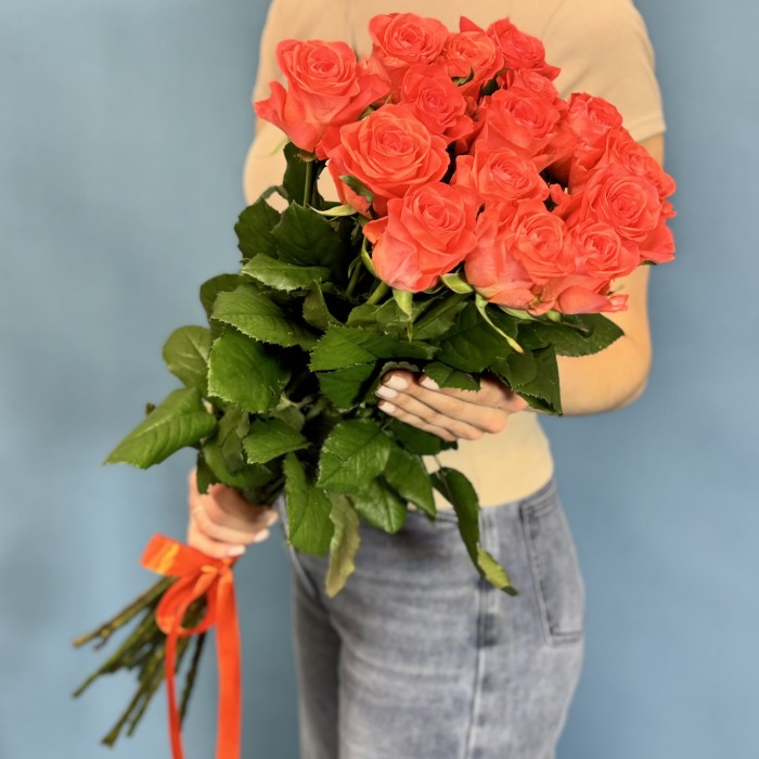 Интенсивный оранжевый оттенок этих роз символизирует энергию, радость и вдохновение, создавая настроение праздника и оптимизма.