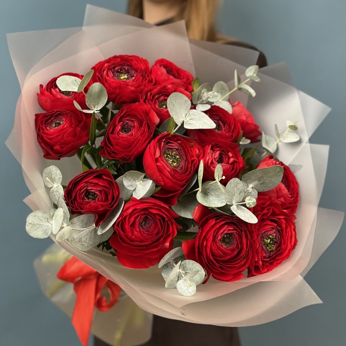 За три месяца мы доставили товар "15 пышных красных Ранункулюсов с эвкалиптом" по следующим локациям: