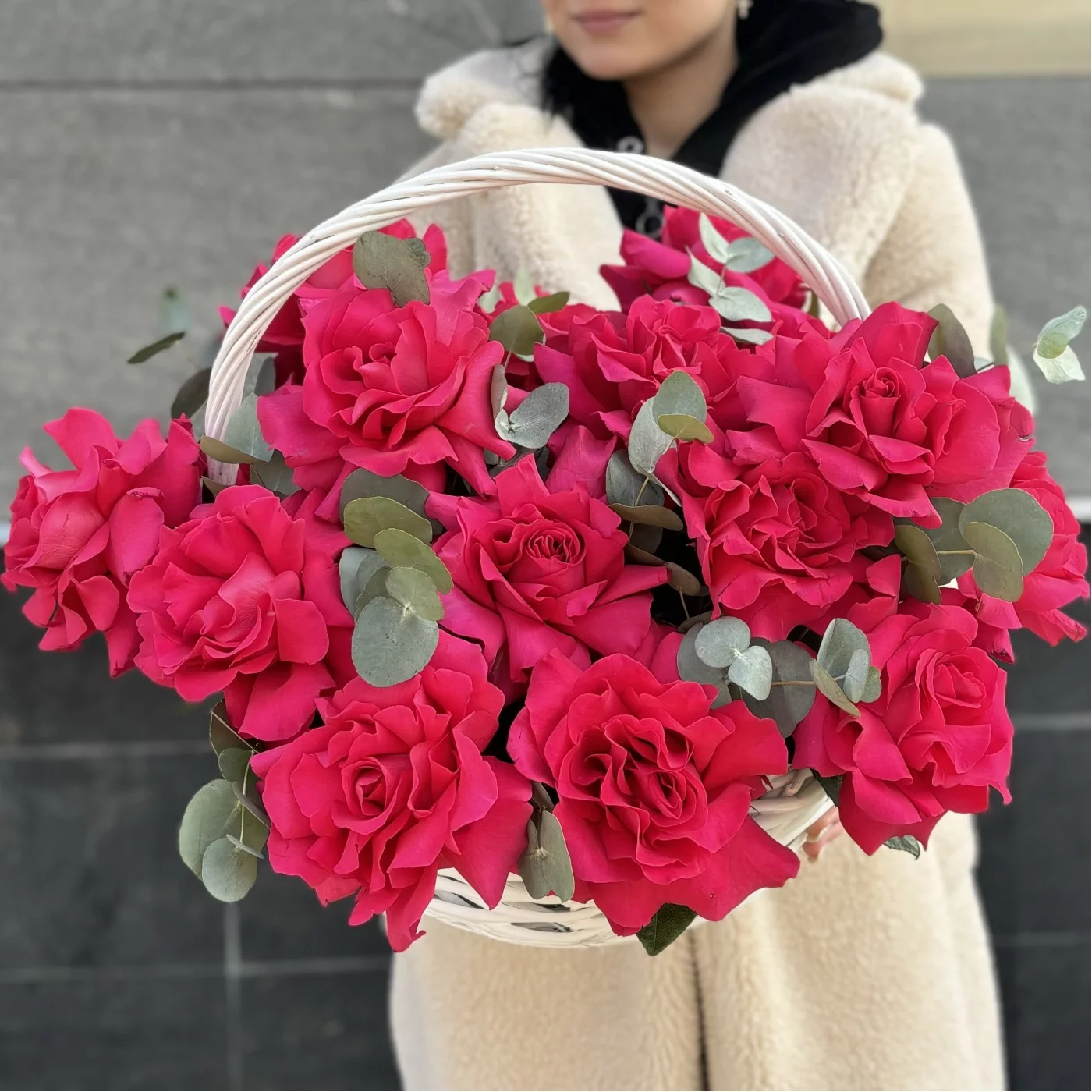 Букет из 15 пышных роз «Пинк Флойд» с эвкалиптом в корзине — это стильный и красивый подарок, который вызовет восхищение и оставит приятные впечатления у получателя. Он отлично подойдет для различных случаев, подчеркивая ваш вкус и заботу!