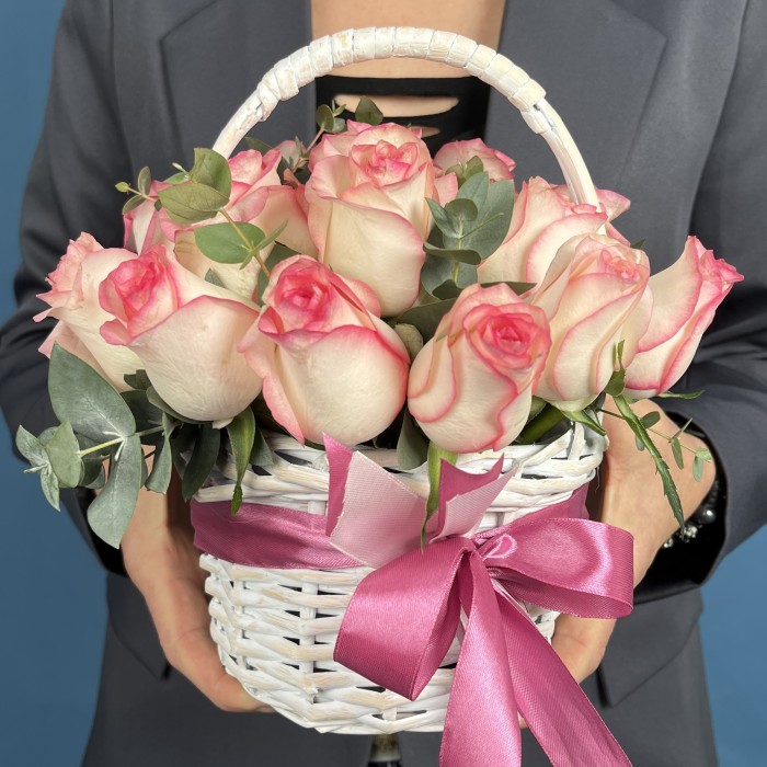 Композиция из 15 роз Джумилия высотой 40 см в изящной корзине — это воплощение утончённой мягкости и светлого очарования. Нежные светло-розовые бутоны создают впечатление лёгкости и чистоты, словно отражают в себе самые тёплые эмоции. В корзине эта композиция выглядит особенно гармонично: каждая роза аккуратно расположена так, чтобы подчеркнуть естественную красоту соседних цветов и создать целостный, по-настоящему совершенный образ. Такой подарок подойдёт тем, кому вы хотите подарить искреннюю нежность — любимой женщине, маме, подруге или коллеге. Он уместен на день рождения, юбилей, поздравление с важным событием или просто ради того, чтобы сделать день светлее. Эта композиция приносит радость своей спокойной, искренней красотой и делает момент значимым. Мы осуществляем доставку по Москве и области круглосуточно, гарантируем свежесть и отличное качество цветов. У нас лучшие цены и превосходные отзывы во всех поисковиках, ведь каждая композиция создаётся с вниманием и душой.