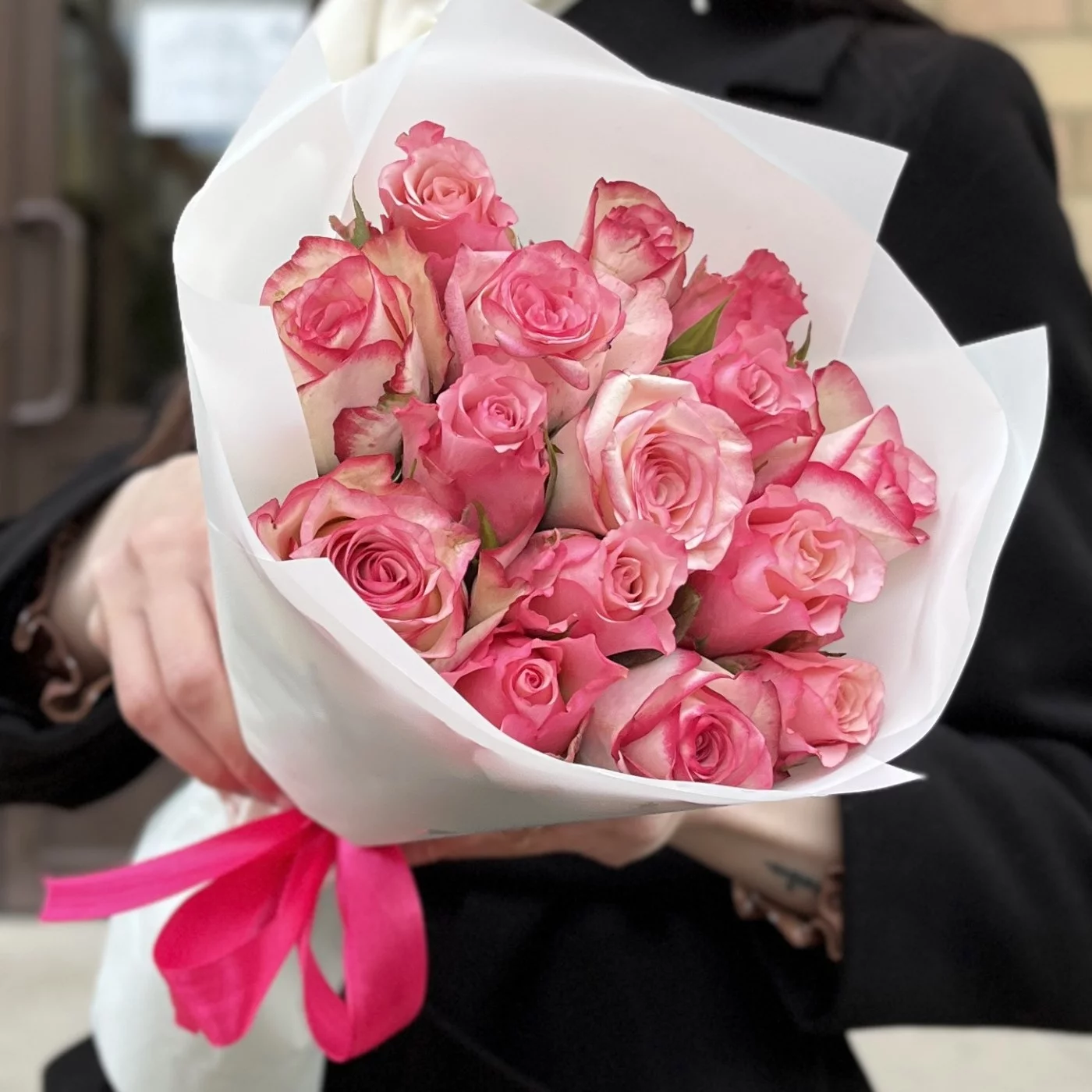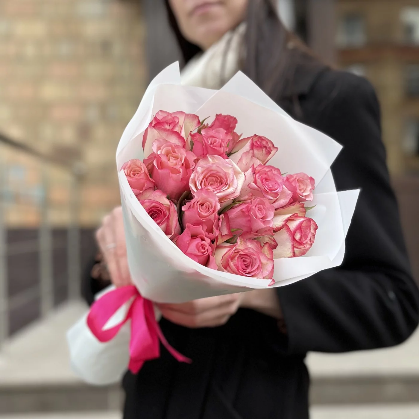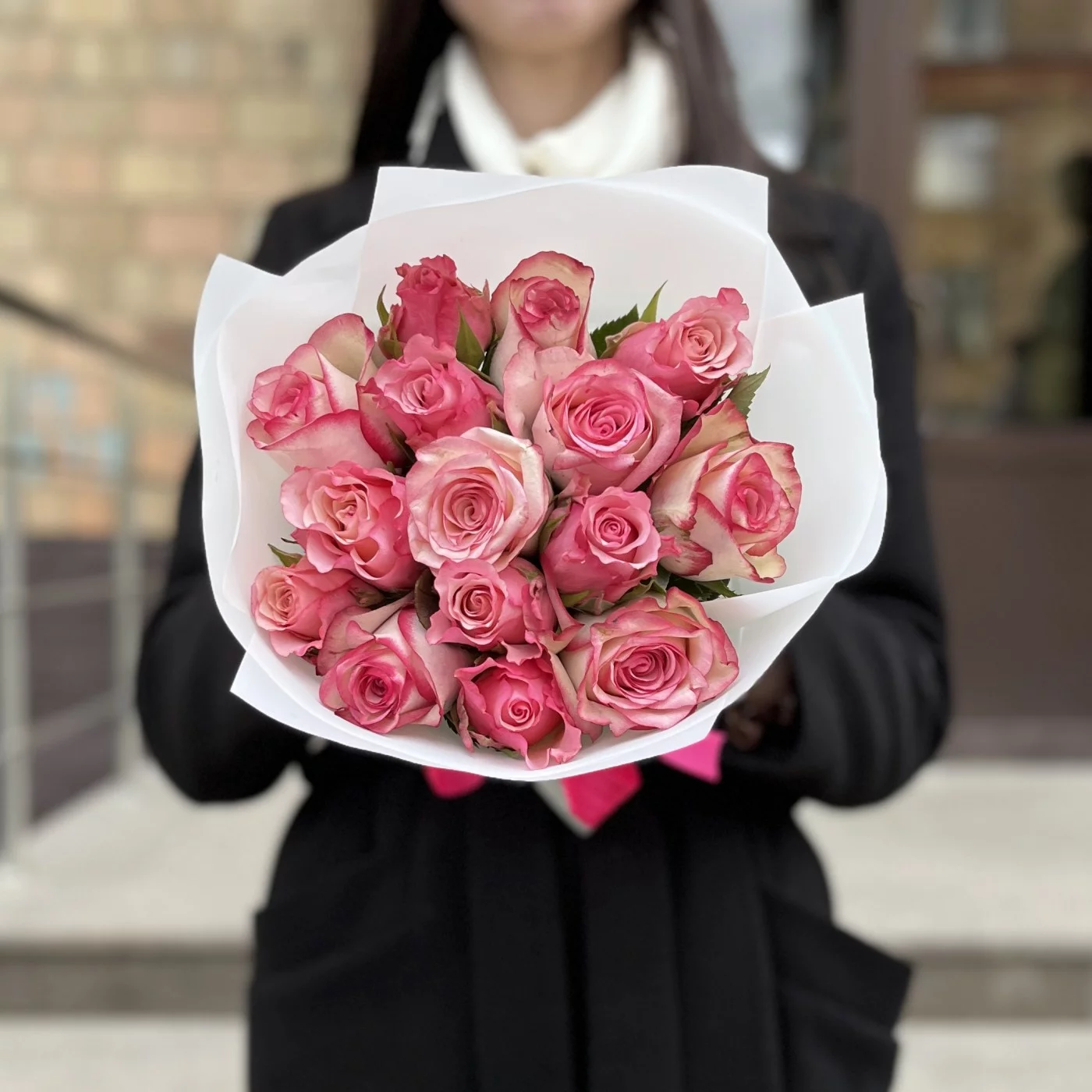 Букет из 15 роз "Алани" микс — это стильный выбор с нежными оттенками розового. Идеальный подарок для любого повода, он наполнит атмосферу радостью и теплом, создавая уют и подчеркивая ваши чувства.