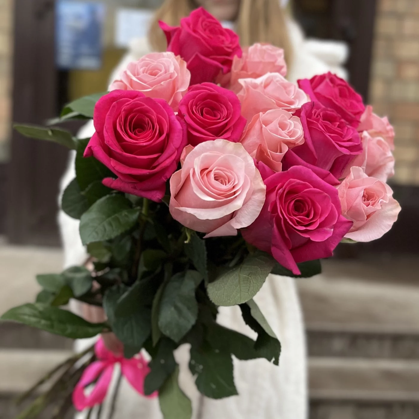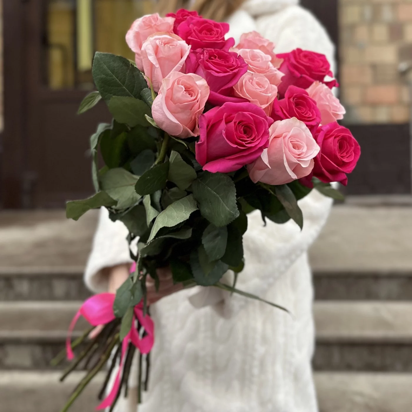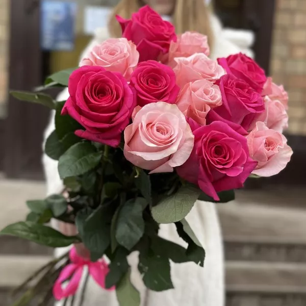 Букет из 15 роз Би Свит и Пинк Флойд 60 см — это отличный способ выразить свои чувства и украсить любое событие.