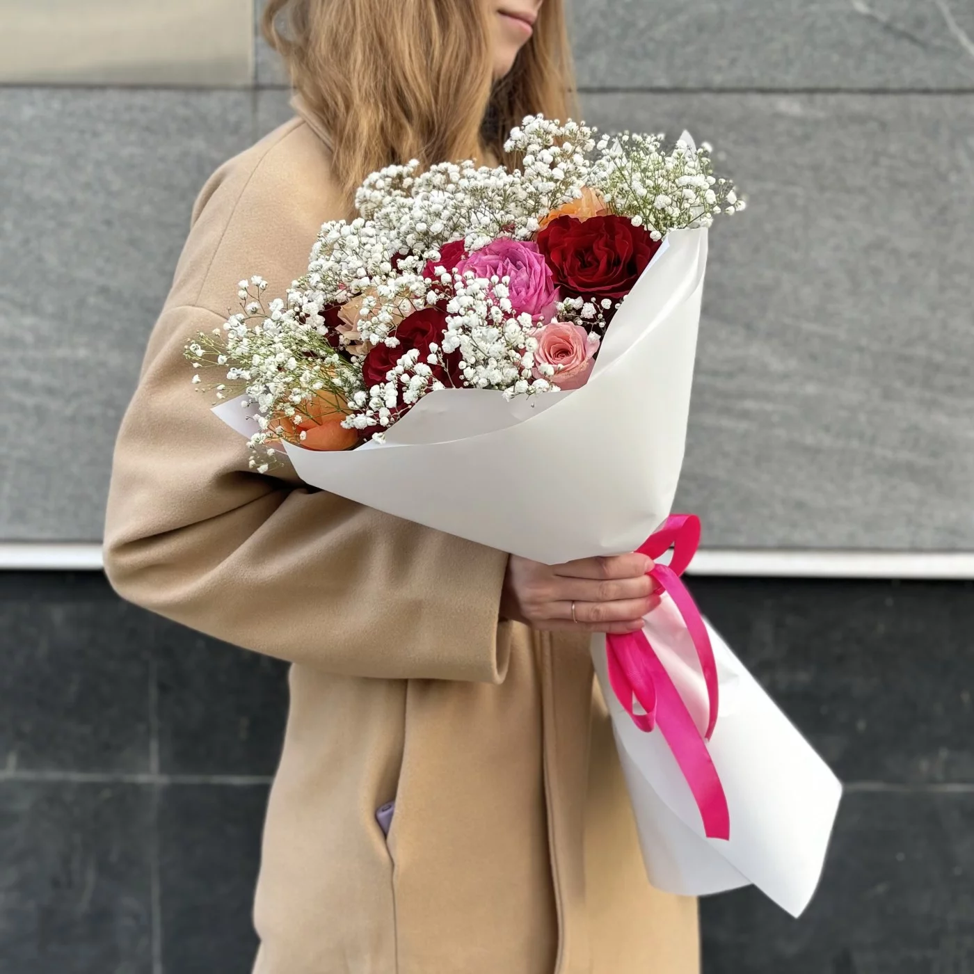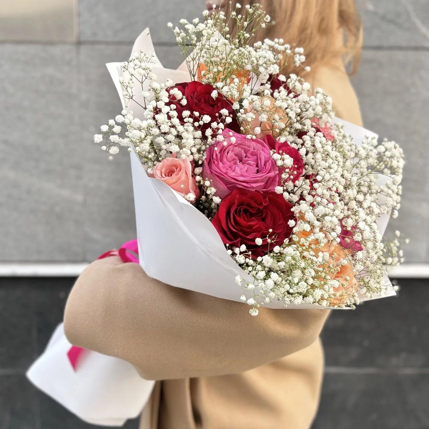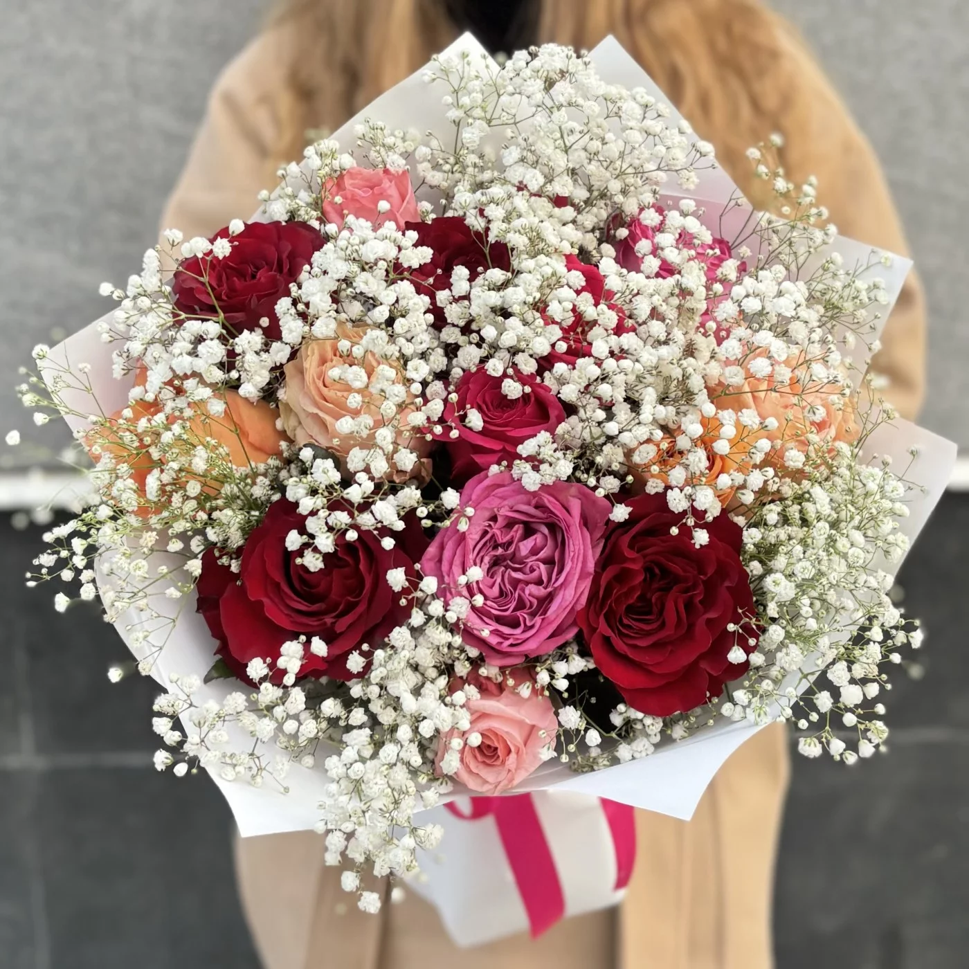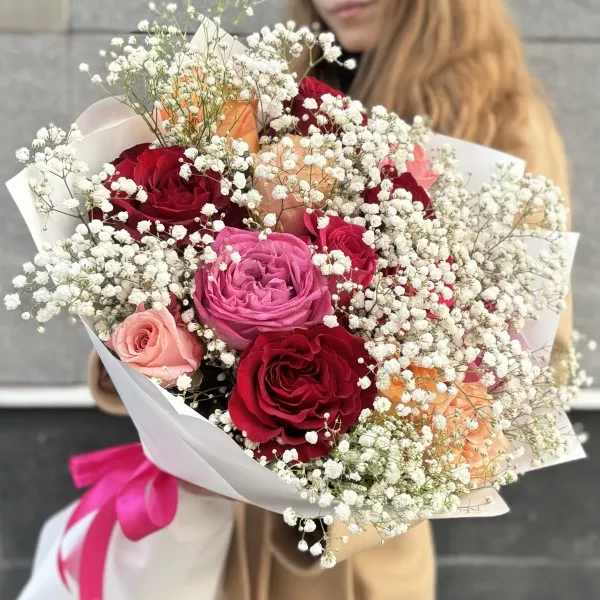 Очаруйте своих близких с букетом из 15 роз с гипсофилой, который станет идеальным подарком для любого случая!