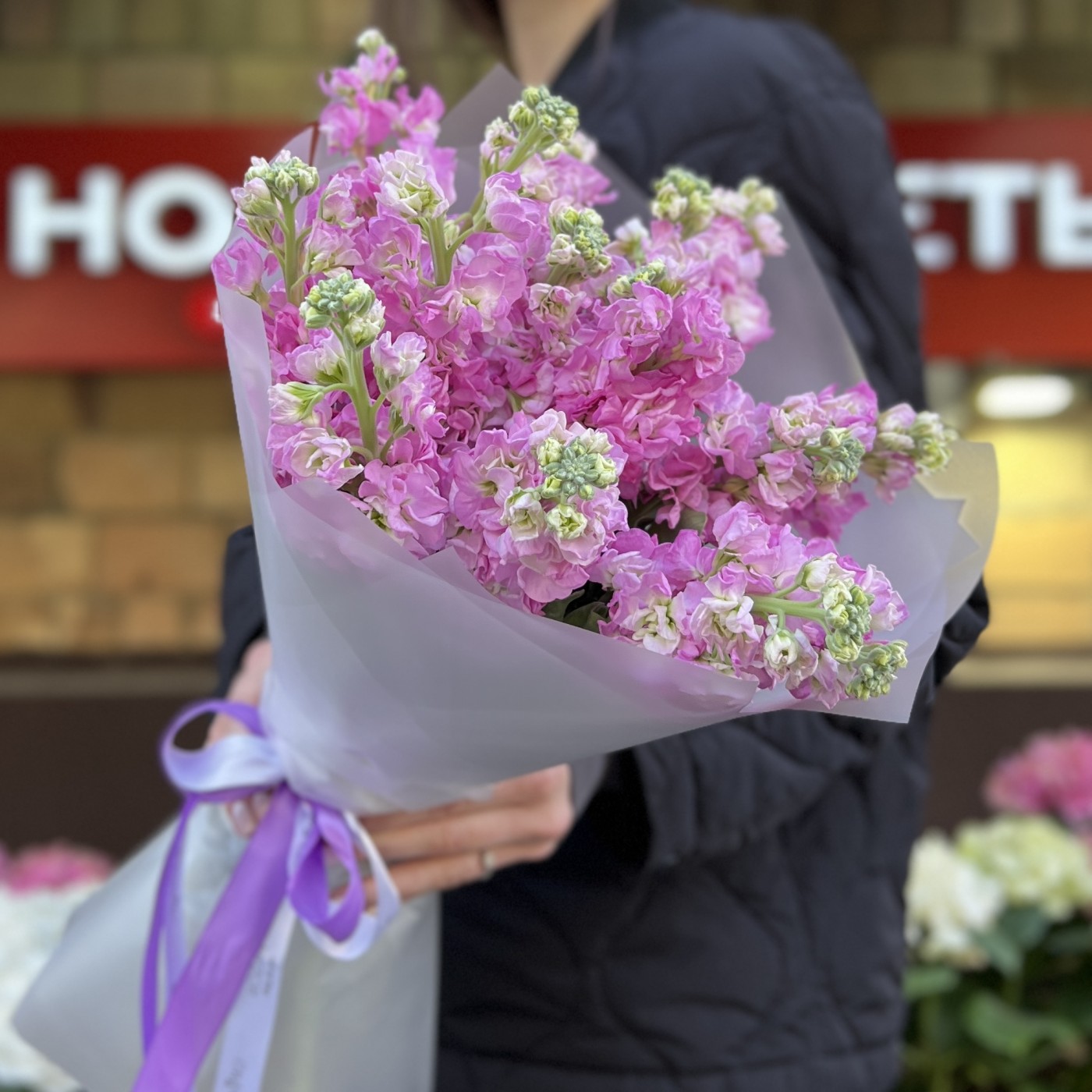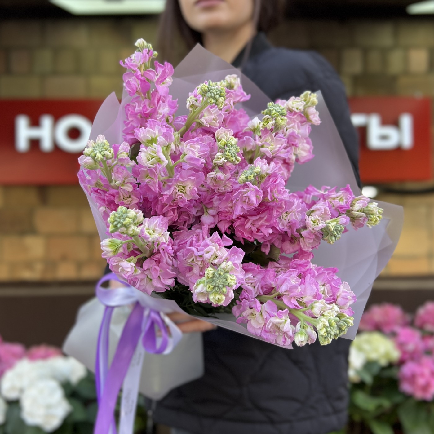 15 розовых ароматных маттиол — изысканный букет, наполненный нежностью и свежестью. Ароматные цветы с мягким розовым оттенком создают уютную атмосферу и подчеркнут особое настроение. Идеальный выбор для выражения чувств и приятных сюрпризов.