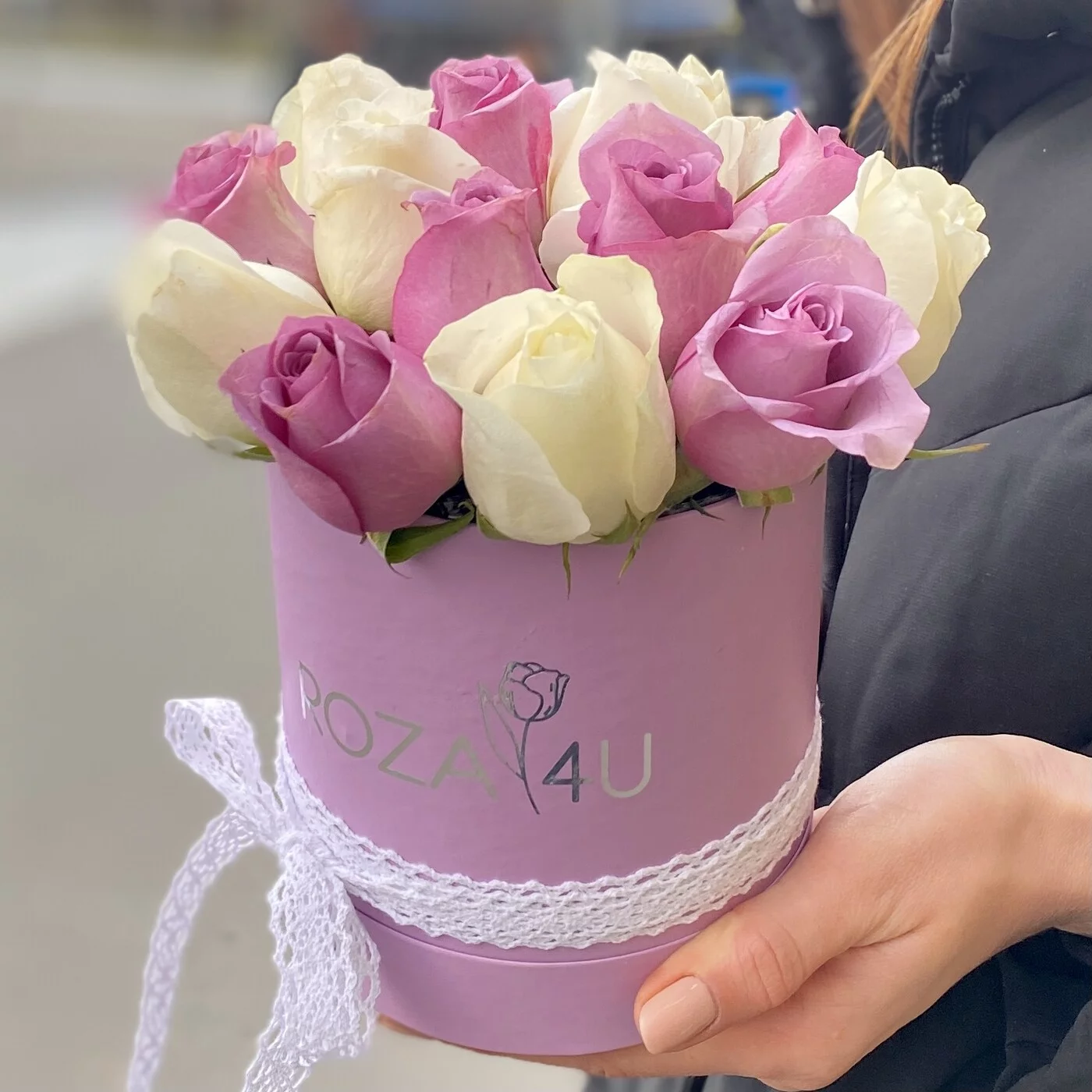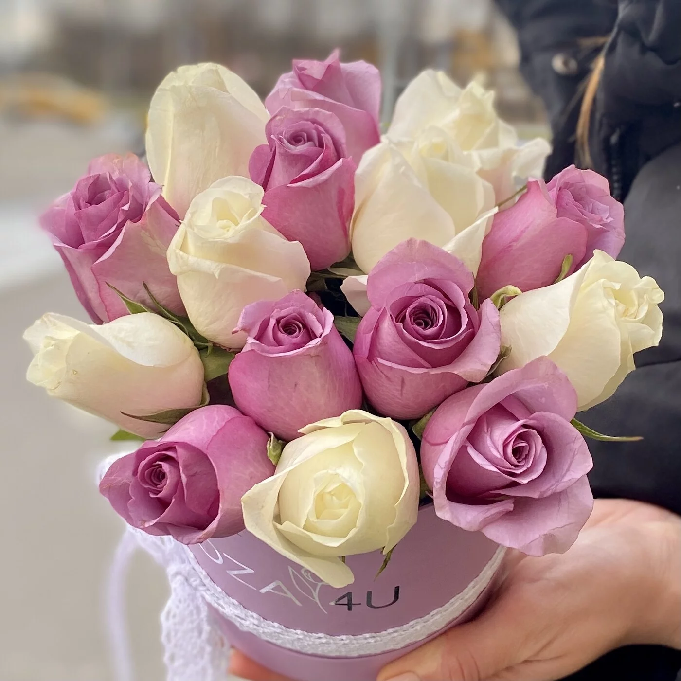 Заказ :15 сиреневых и белых роз в коробке. Спасибо за своевременную доставку и доброжелательность. Очень нежная и красивая композиция.