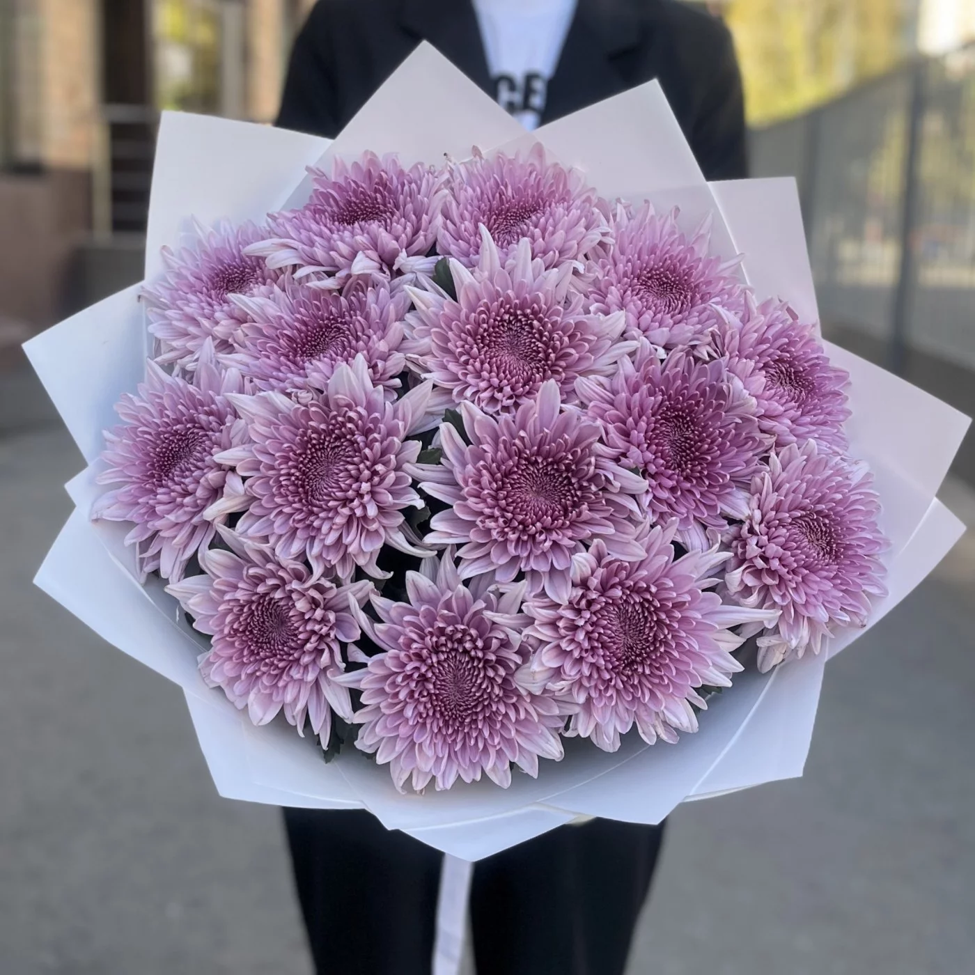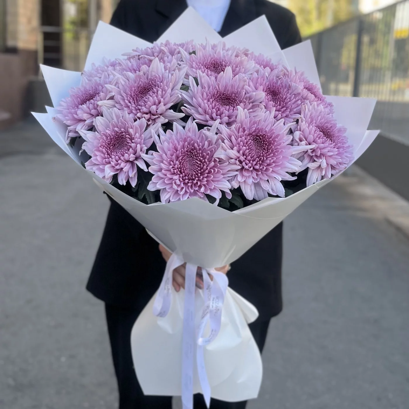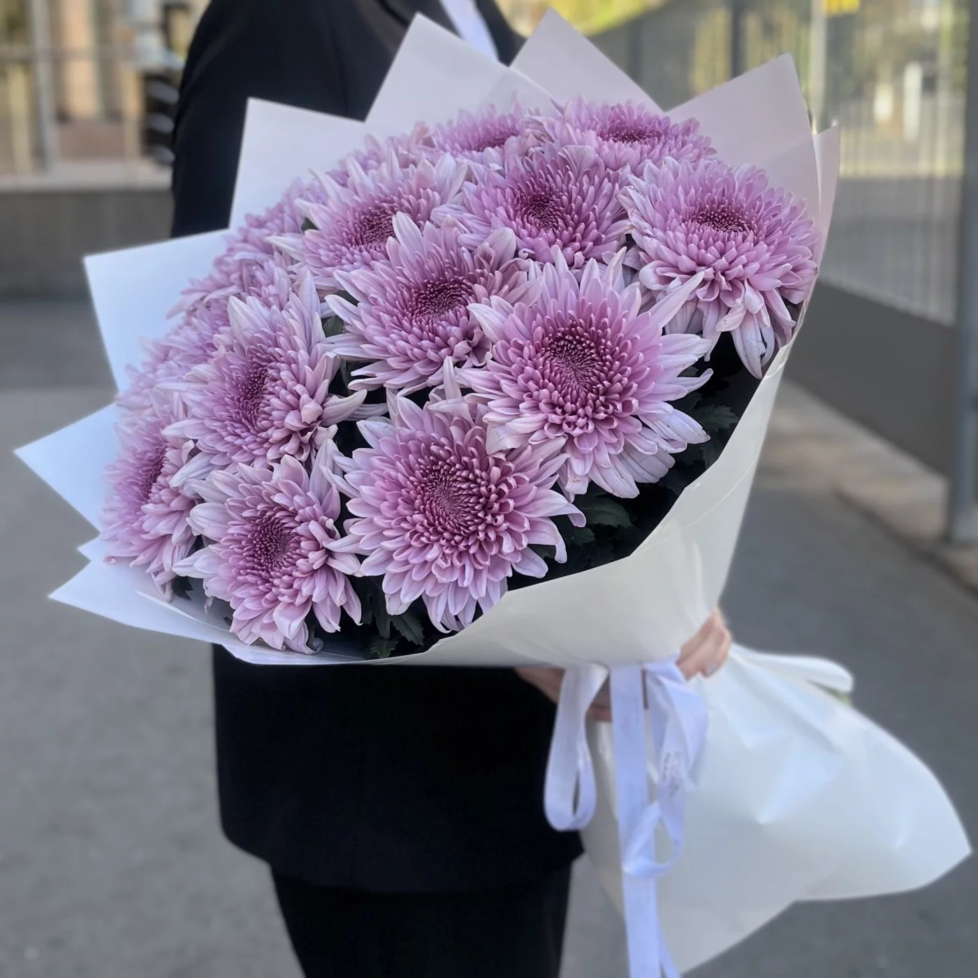 15 сиреневых хризантем — это красивый и стильный выбор для букета!