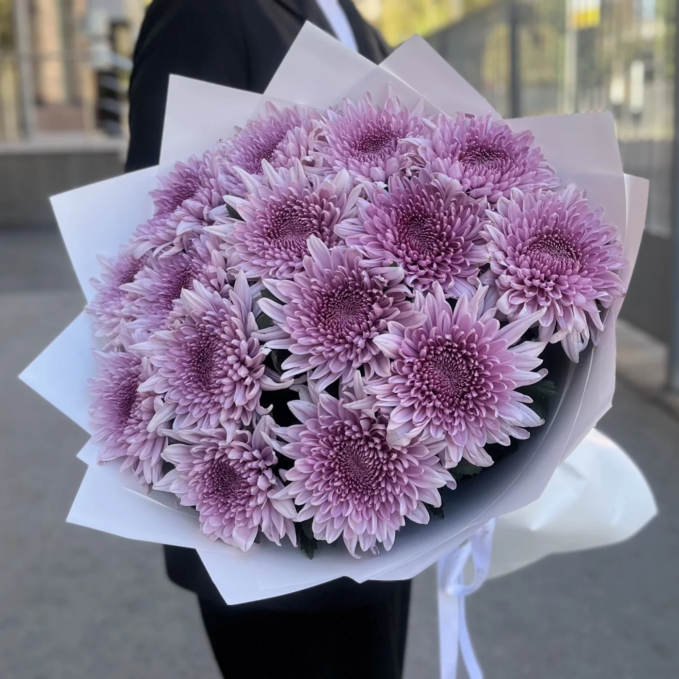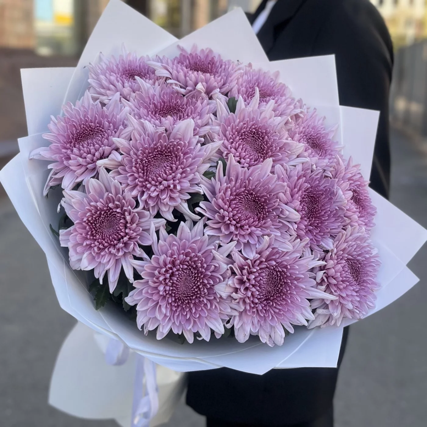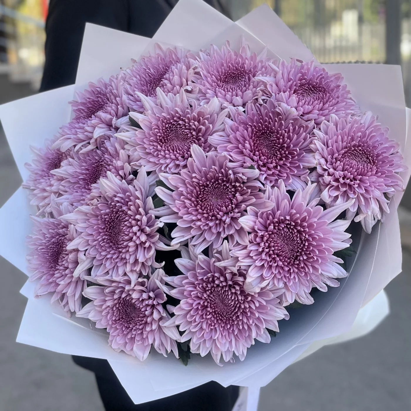 15 сиреневых хризантем — это красивый и стильный выбор для букета!