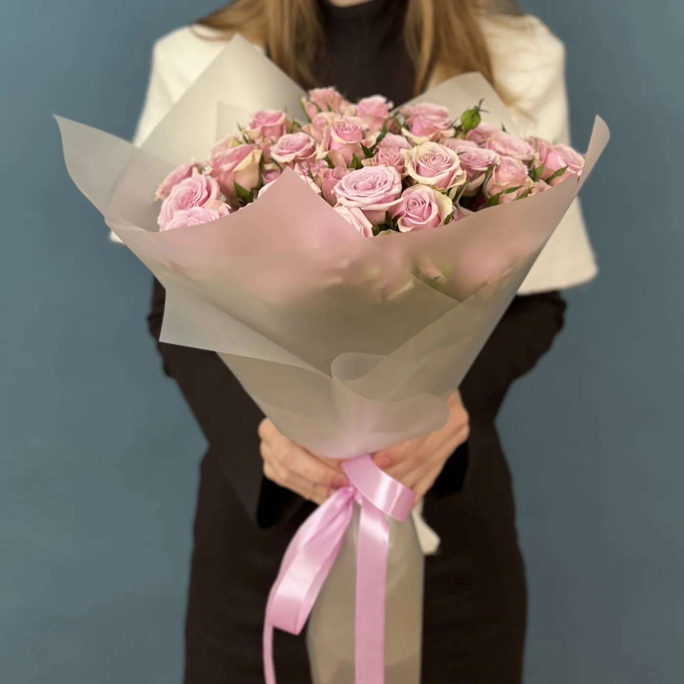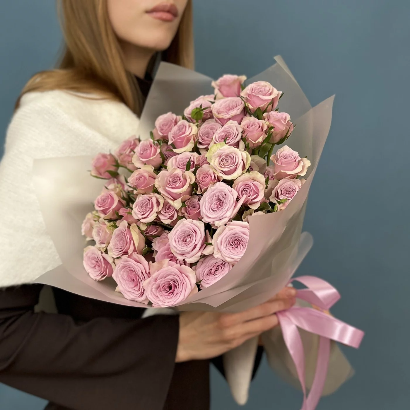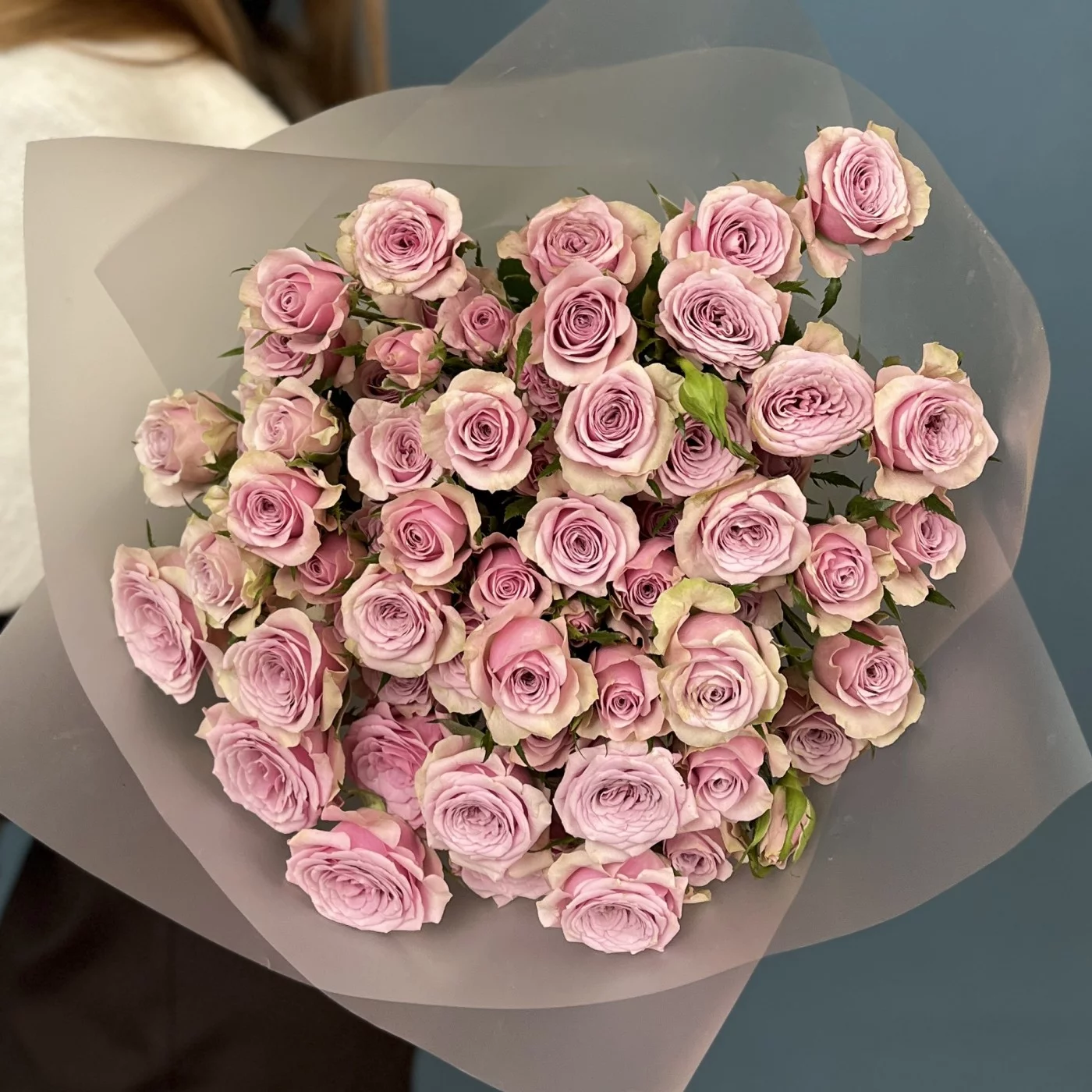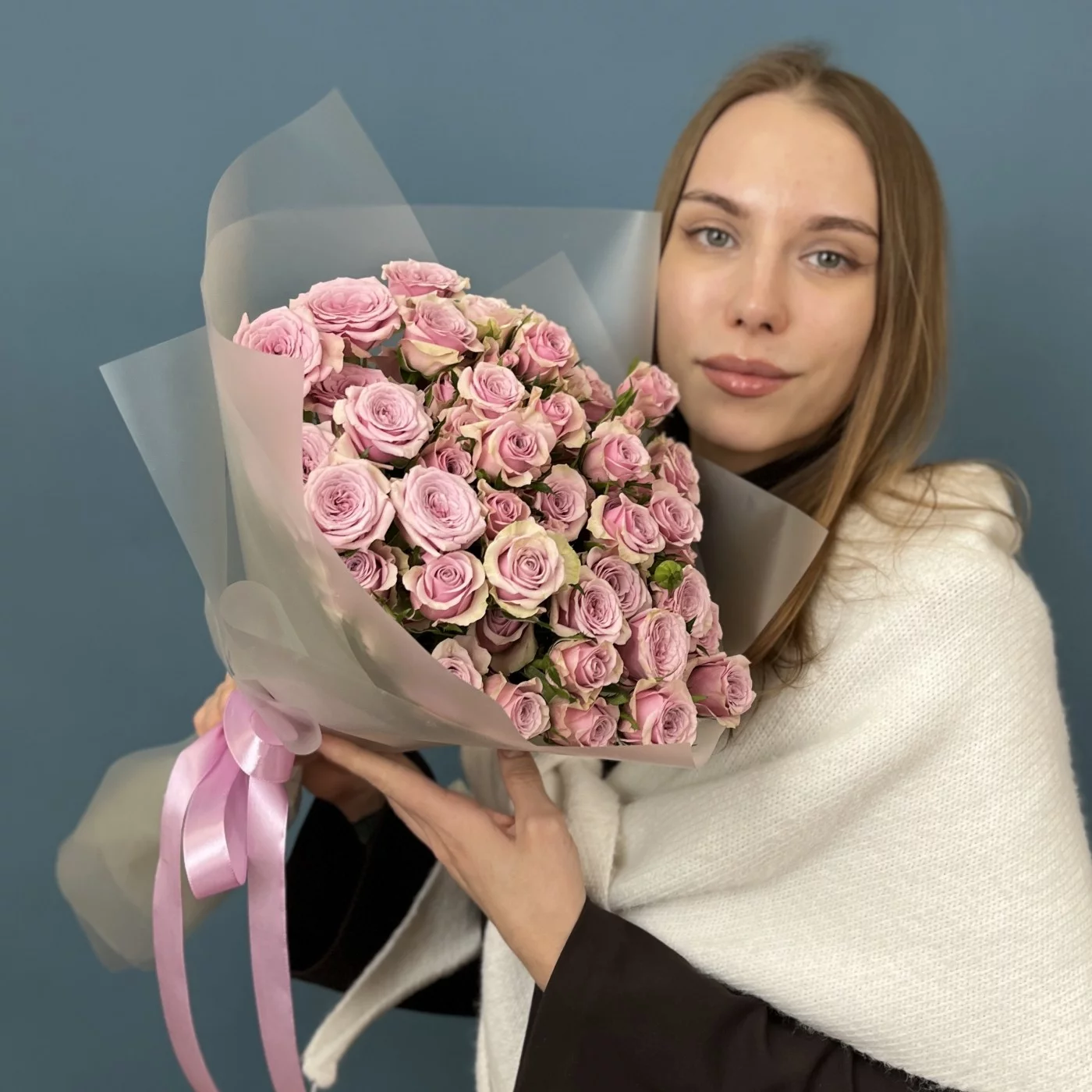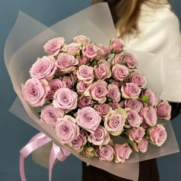 Букет из 15 сиреневых кустовых роз Лейла 40 см — это великолепная и роскошная композиция, которая переполнена нежностью и элегантностью. Сиреневые розы олицетворяют романтику и загадочность, а их высота в 40 см прекрасно подходит для создания эффектного подарка.