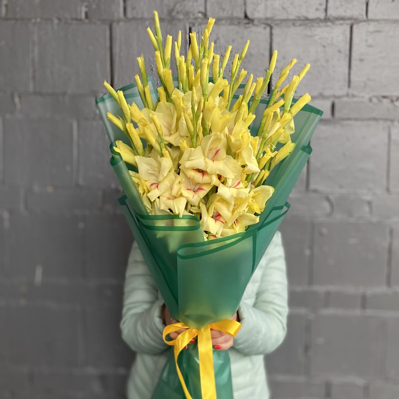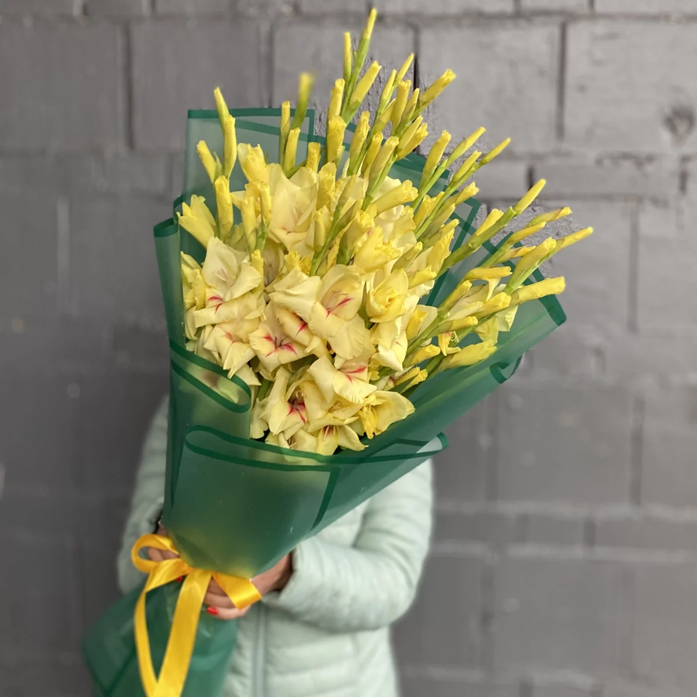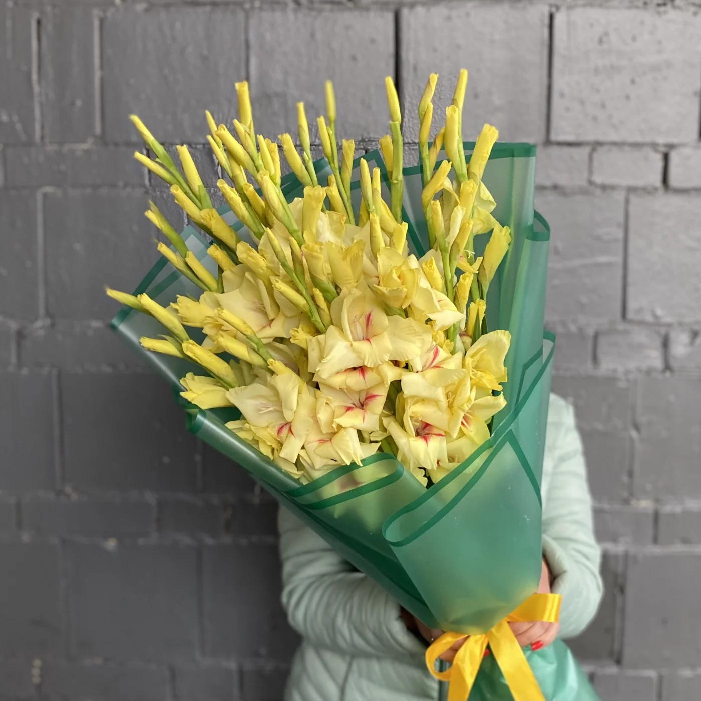 Букет из 15 ярких желтых гладиолусов. Гладиолусы – самые роскошные осенние цветы, которые не оставят равнодушным никого и смогут порадовать Вашего получателя. Гладиолусы уместно преподнести в качестве подарка уважаемому коллеге, партнеру по бизнесу.