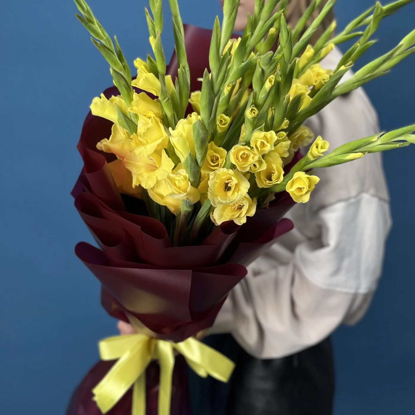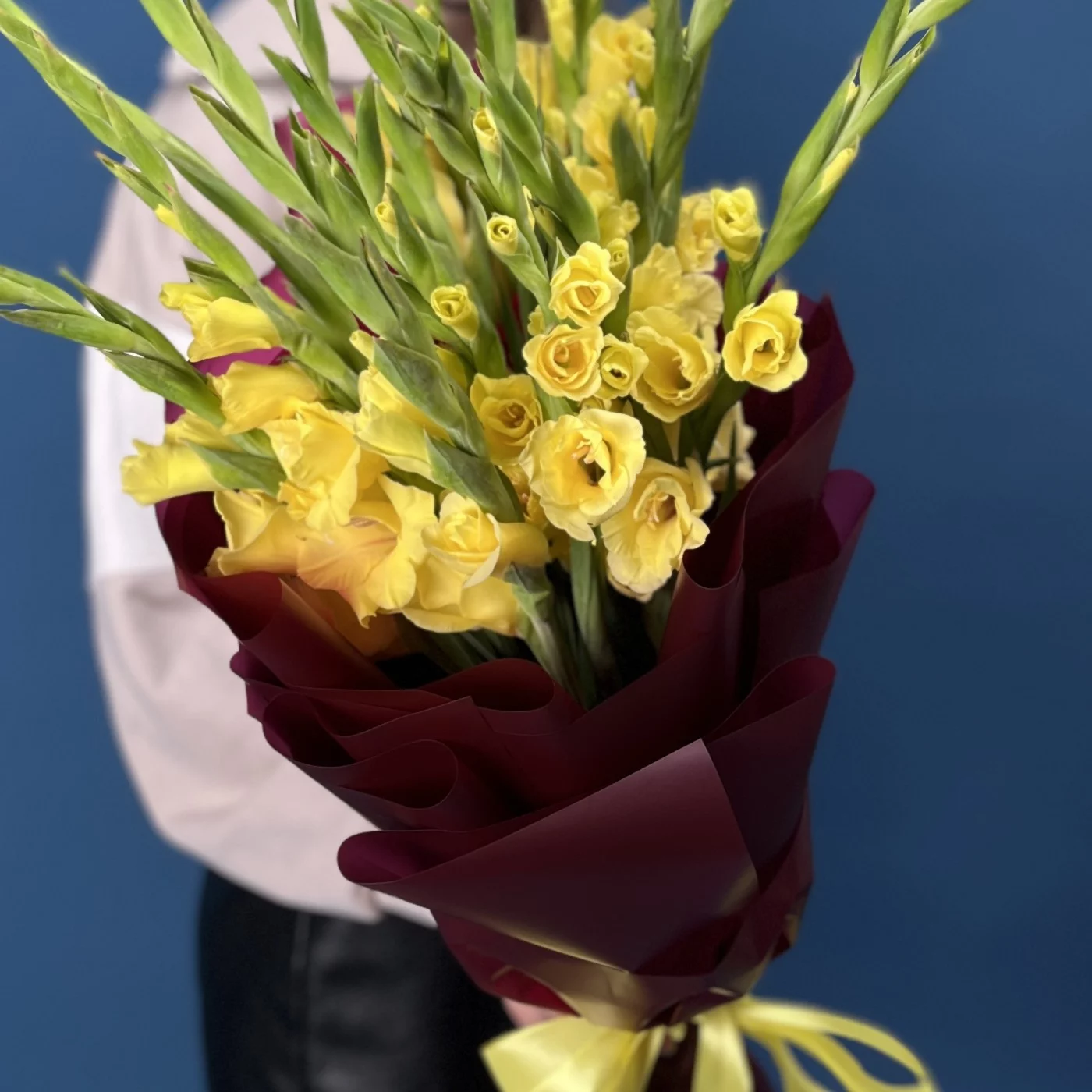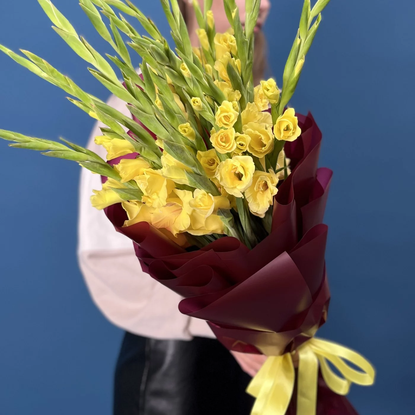 Роскошный букет из 15 ярких желтых гладиолусов станет настоящим украшением любого праздника. Каждый цветок заботливо упакован, сохраняя свою свежесть и неповторимую красоту. Желтые гладиолусы символизируют радость, солнечное тепло и счастье, поэтому этот букет — идеальный подарок для тех, кому вы хотите подарить яркие эмоции и хорошее настроение. Прекрасно подходит для поздравления с юбилеем, днем рождения или просто для того, чтобы порадовать близкого человека. Дарите радость вместе с этим солнечным букетом!