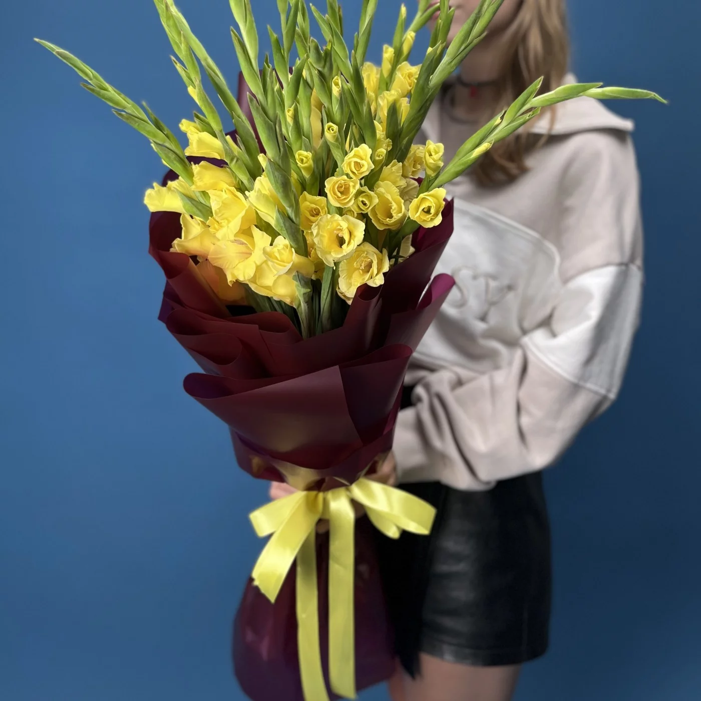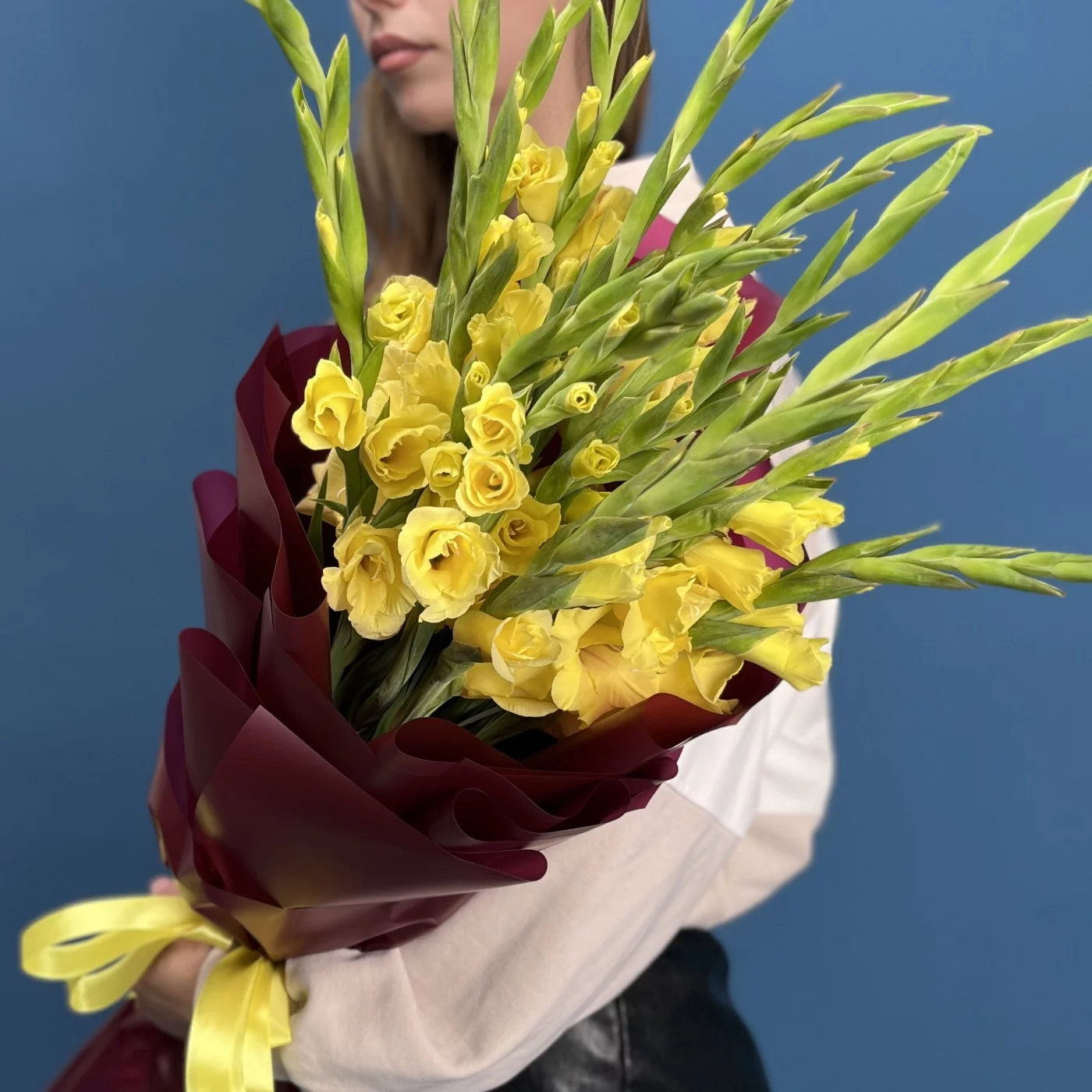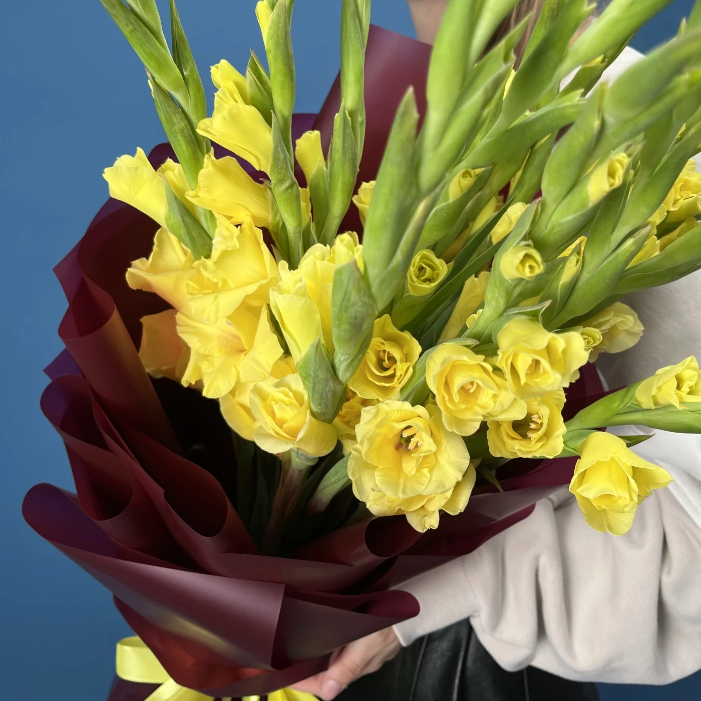 Роскошный букет из 15 ярких желтых гладиолусов станет настоящим украшением любого праздника. Каждый цветок заботливо упакован, сохраняя свою свежесть и неповторимую красоту. Желтые гладиолусы символизируют радость, солнечное тепло и счастье, поэтому этот букет — идеальный подарок для тех, кому вы хотите подарить яркие эмоции и хорошее настроение. Прекрасно подходит для поздравления с юбилеем, днем рождения или просто для того, чтобы порадовать близкого человека. Дарите радость вместе с этим солнечным букетом!