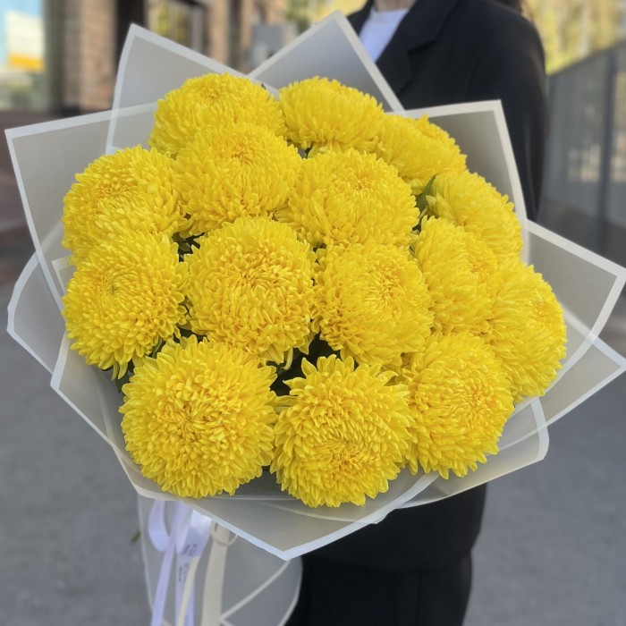 15 желтых хризантем — это замечательный выбор для создания яркого и солнечного букета!