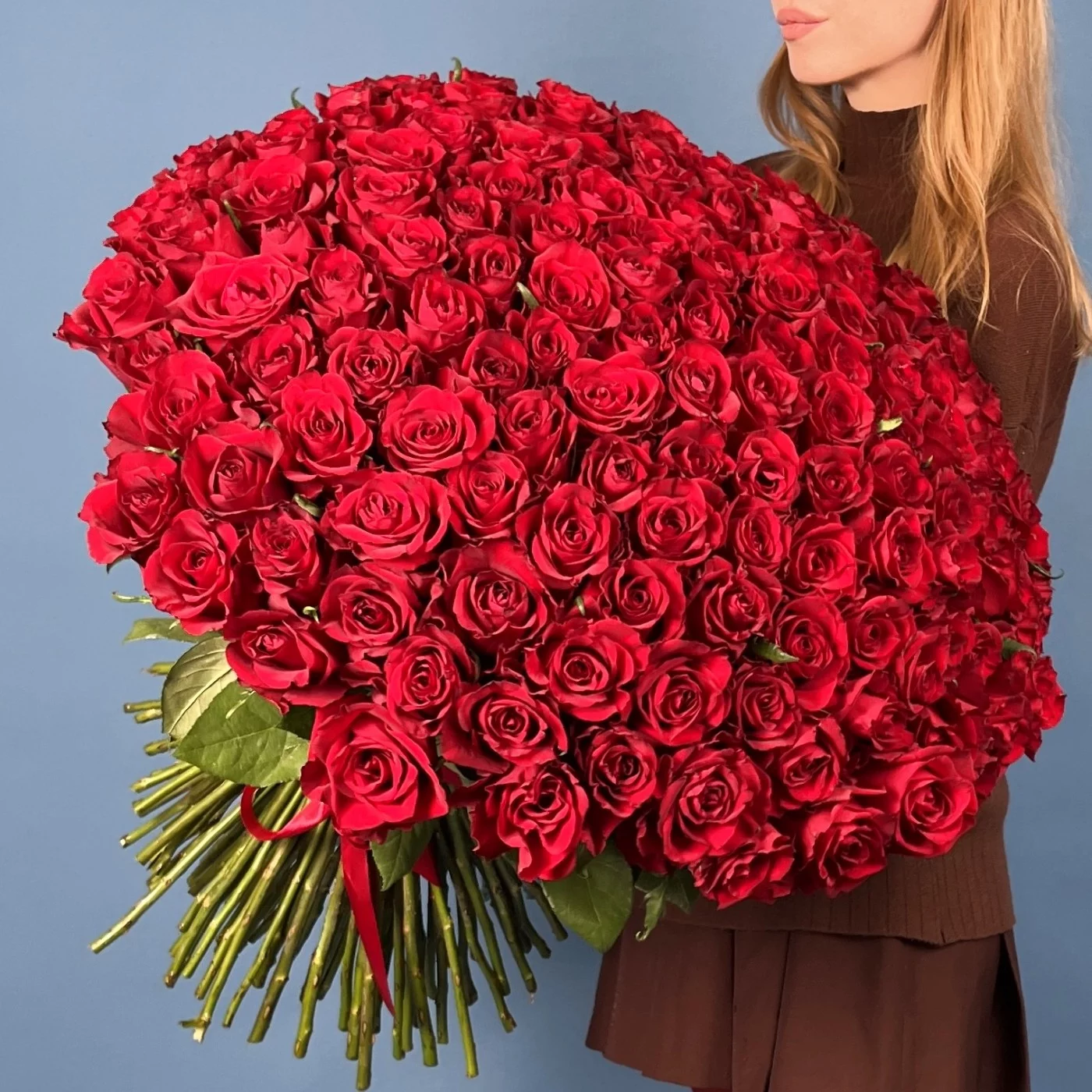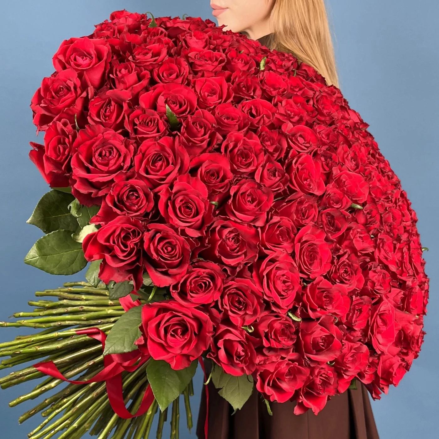 Роскошный букет из 151 свежей красной розы сорта Эвер Ред высотой 70 см. Яркий и насыщенный цвет этих роз символизирует страсть, истинную любовь и глубокие чувства. Идеальный подарок для выражения искренних эмоций на особых праздниках и торжественных моментах.