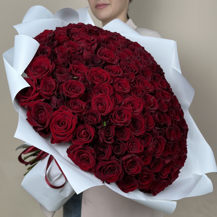 151 красная роза сорта Ред Наоми 50 см — это роскошный и элегантный букет, который станет идеальным подарком для самых торжественных случаев.