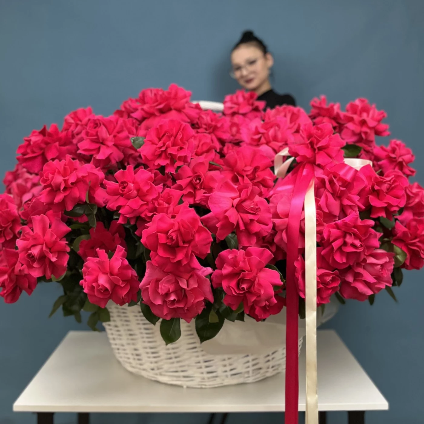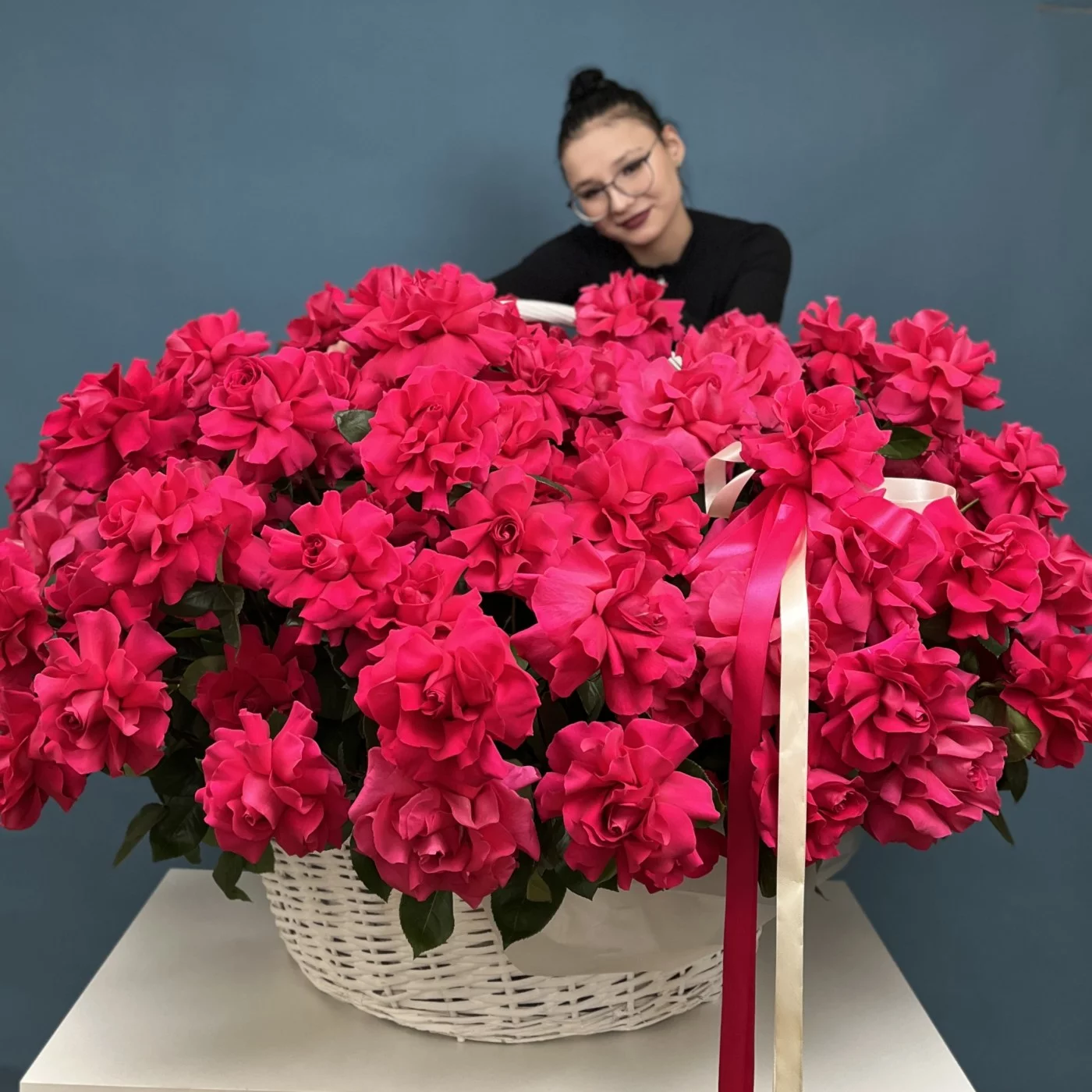 Букет из 151 малиновая французской розы "Пинк Флойд" — это не просто цветочная композиция, а настоящее произведение искусства, способное сделать любое событие незабываемым.
