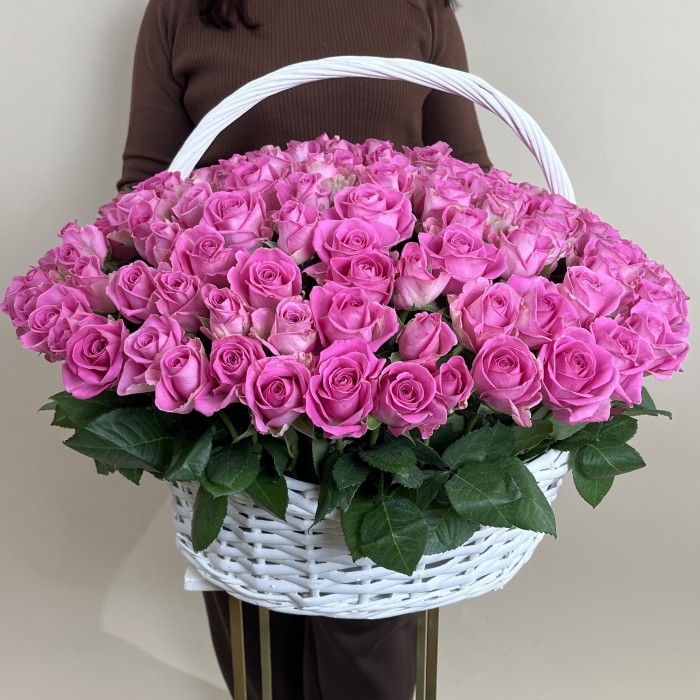 Букет из 151 розовой розы Аква высотой 40 см в корзине — это роскошная и одновременно нежная композиция, созданная для самых значимых моментов. Чистый розовый оттенок роз выглядит утончённо и светло, а плотная посадка бутонов формирует безупречный объём и идеальную форму. Корзина подчёркивает статус подарка и делает композицию завершённой и особенно эффектной. Такой букет выглядит прекрасно и совершенно, вызывает искренние эмоции и приносит радость своим масштабом и гармонией. Он станет идеальным подарком для любимой женщины, невесты или близкого человека и подойдёт для предложения, юбилея, признания в любви или большого праздника. Мы осуществляем доставку по Москве и области круглосуточно, гарантируем отличное качество и свежесть цветов. У нас лучшие цены и отличные отзывы покупателей во всех поисковиках.