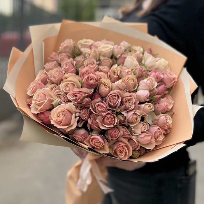 19 кустовых пионовидных роз Дестини — это стильный, нежный и гармоничный букет, который подчеркнёт особенность момента и оставит приятные впечатления.