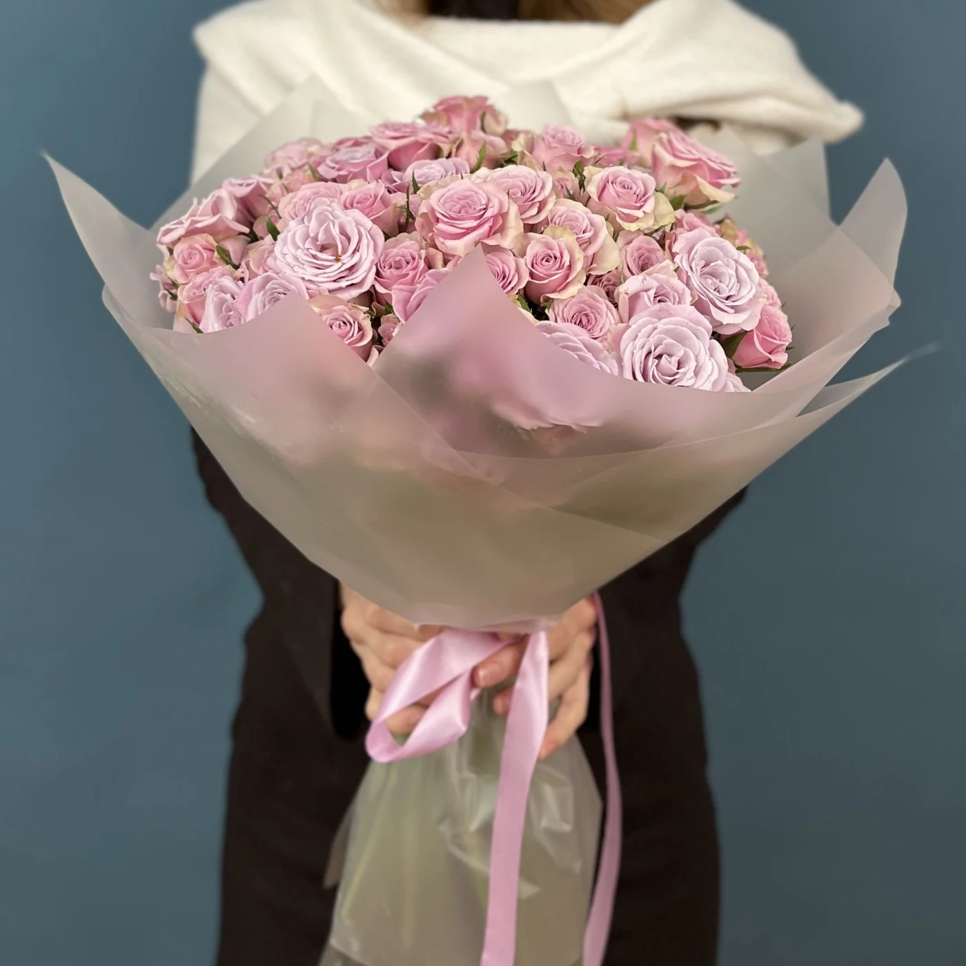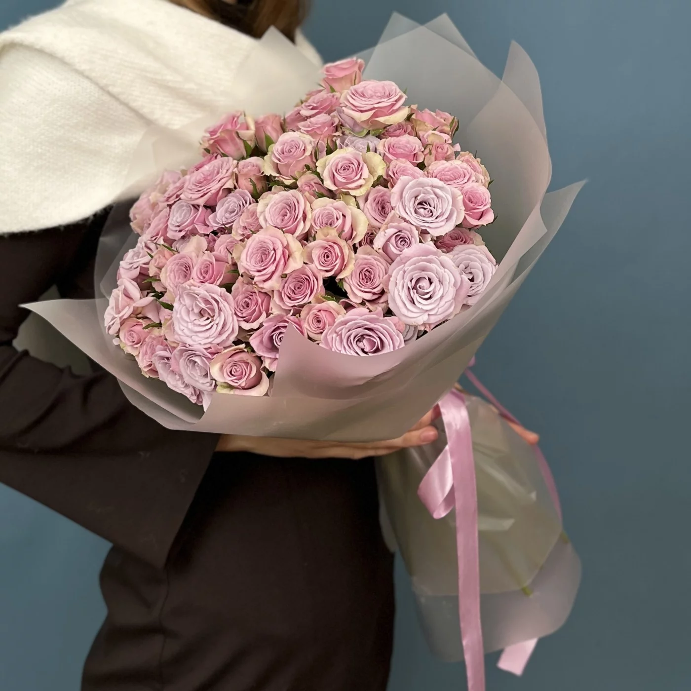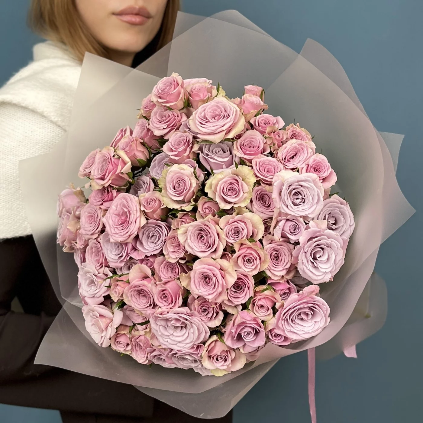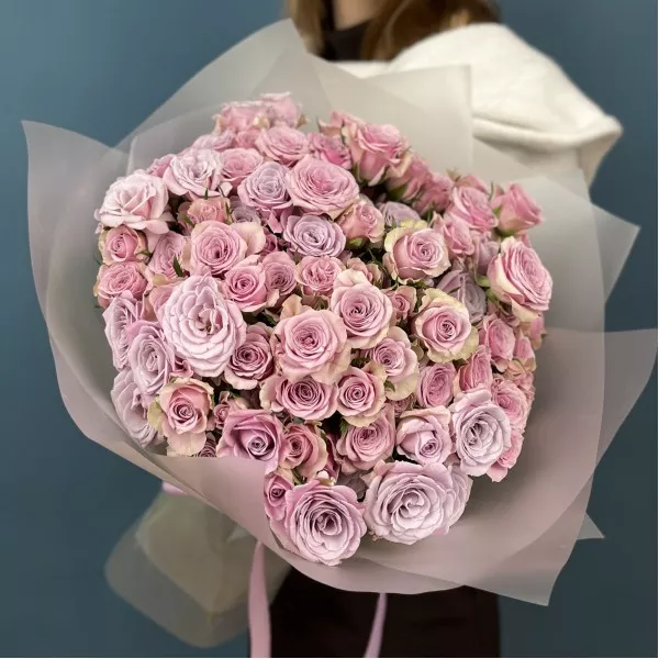 Букет из 19 сиреневых кустовых роз Лейла 40 см — это элегантный способ выразить свои чувства и сделать любой момент поистине незабываемым. Такой подарок обязательно запомнится надолго и скрасит сердце своего адресата!