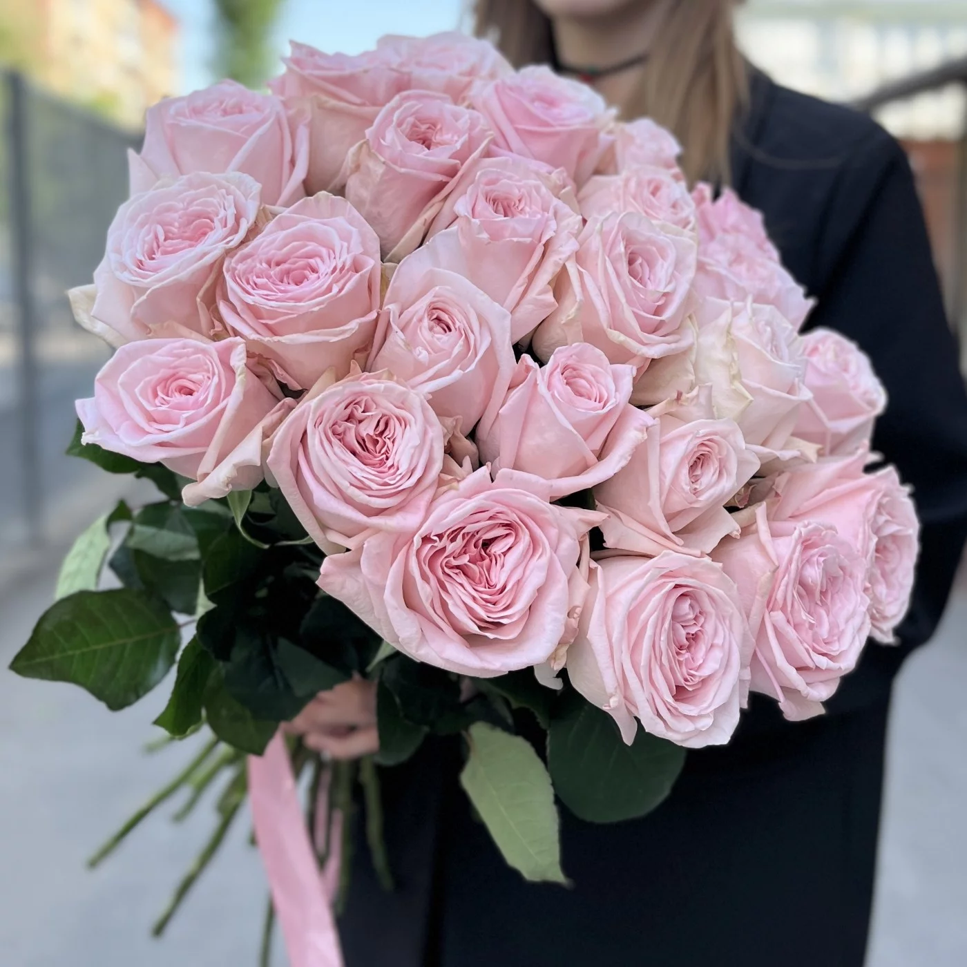 Букет из 25 ароматных роз Пинк Охара 60 см, станет великолепным акцентом в любом интерьере, подарив вашим близким ощущение любви и заботы. Подарите красоту и аромат с этим роскошным букетом!