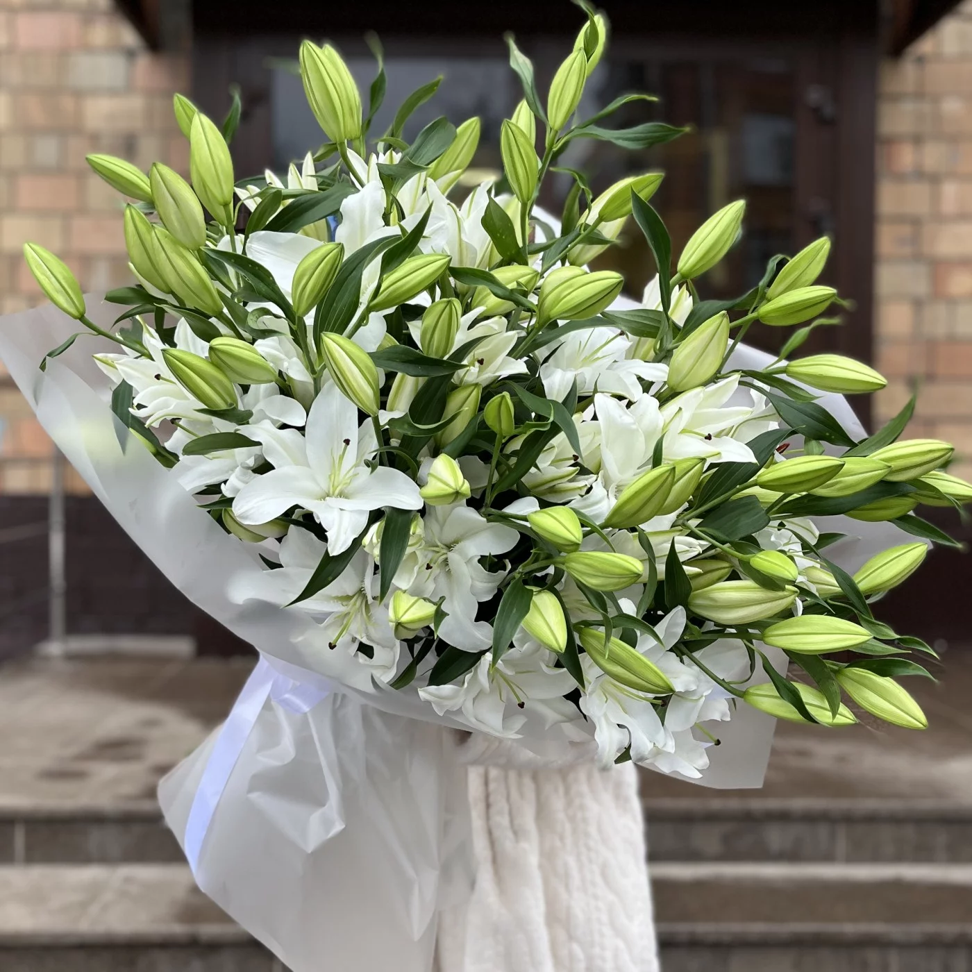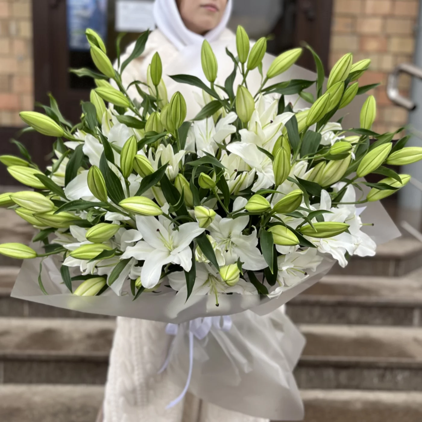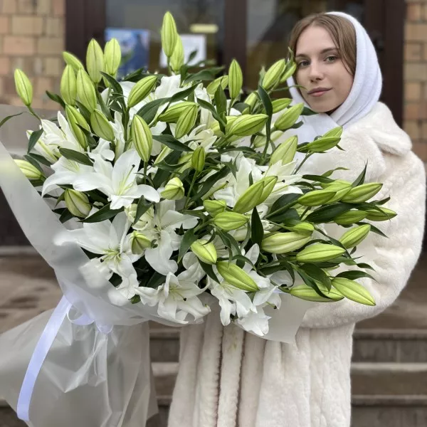 25 белых Восточных Лилий - такой букет станет великолепным подарком на день рождения, годовщину или просто как знак внимания.
