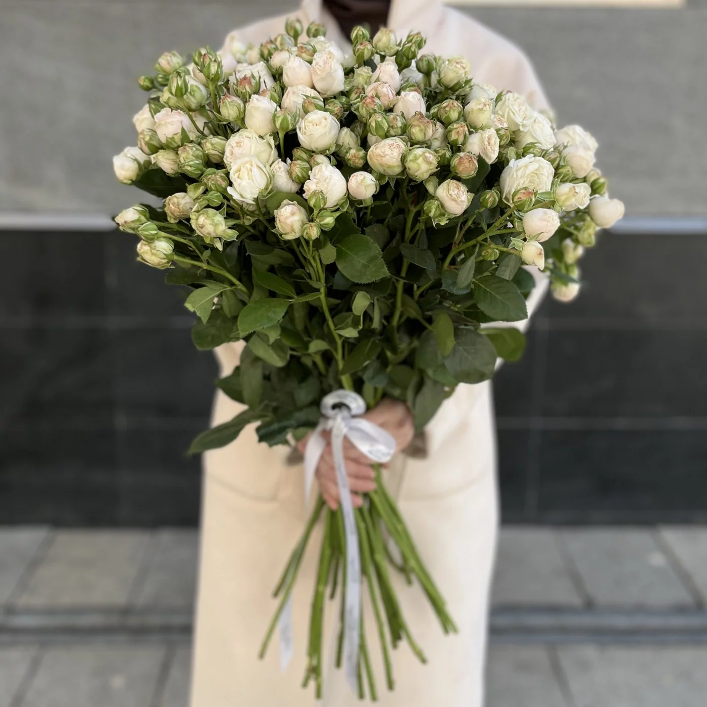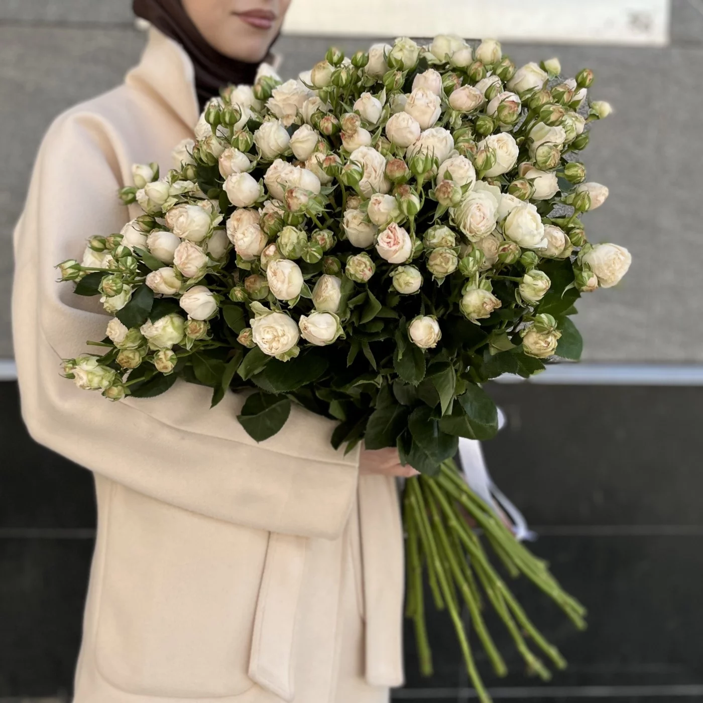 Букет из 25 кустовых пионовидных роз Принцесс Бомбастик 60 см — это настоящее воплощение красоты и нежности, которое подарит радость и множество приятных моментов!