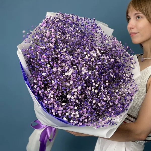 Фиолетовый оттенок гипсофилы добавляет загадочности и утончённости, создавая атмосферу изящества и гармонии.