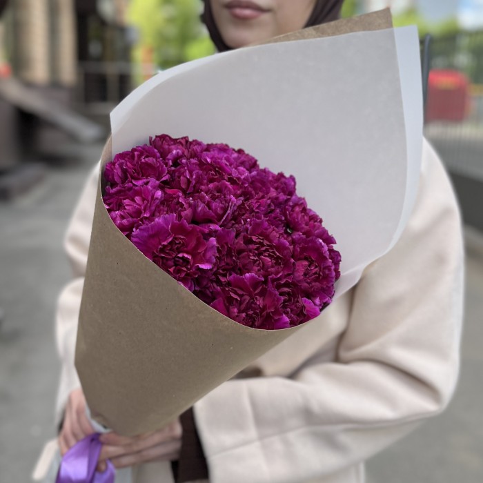 Букет из 25 фиолетовых гвоздик — это яркое и оригинальное решение для любого повода. Эти цветы с насыщенным цветом и густыми лепестками символизируют креативность и индивидуальность. Идеально подходят для создания стильных композиций, добавляя в атмосферу нотки свежести и элегантности.
