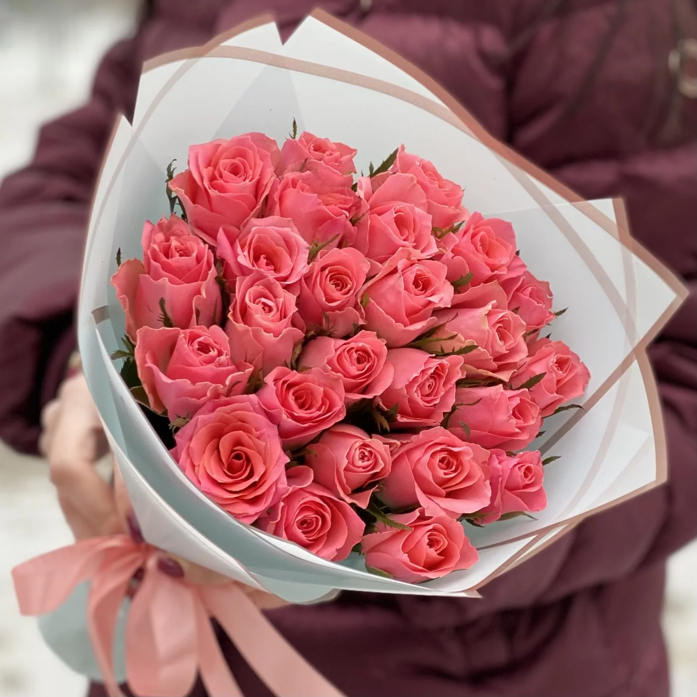25 коралловых невероятно красивых роз сорта Эйс Пинк