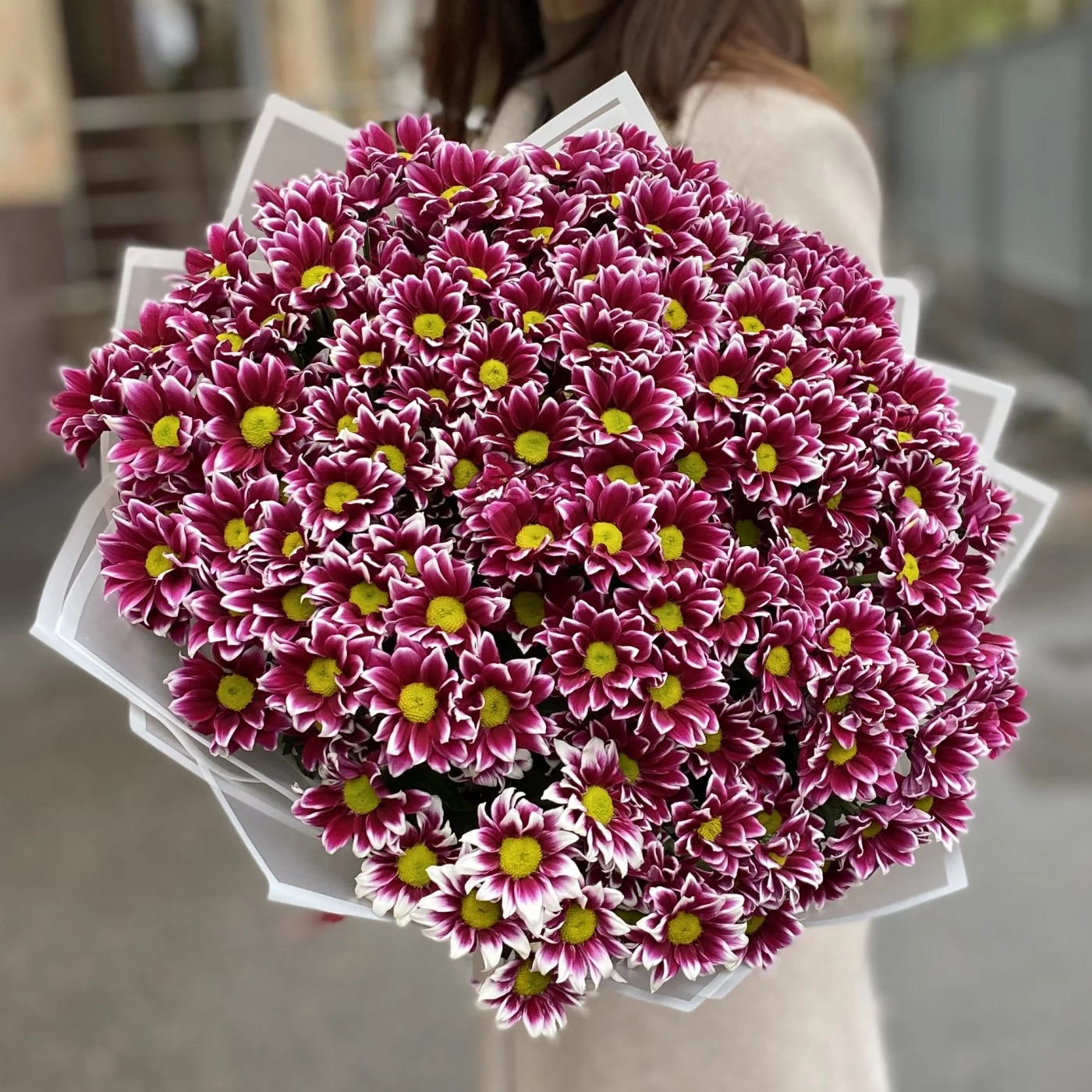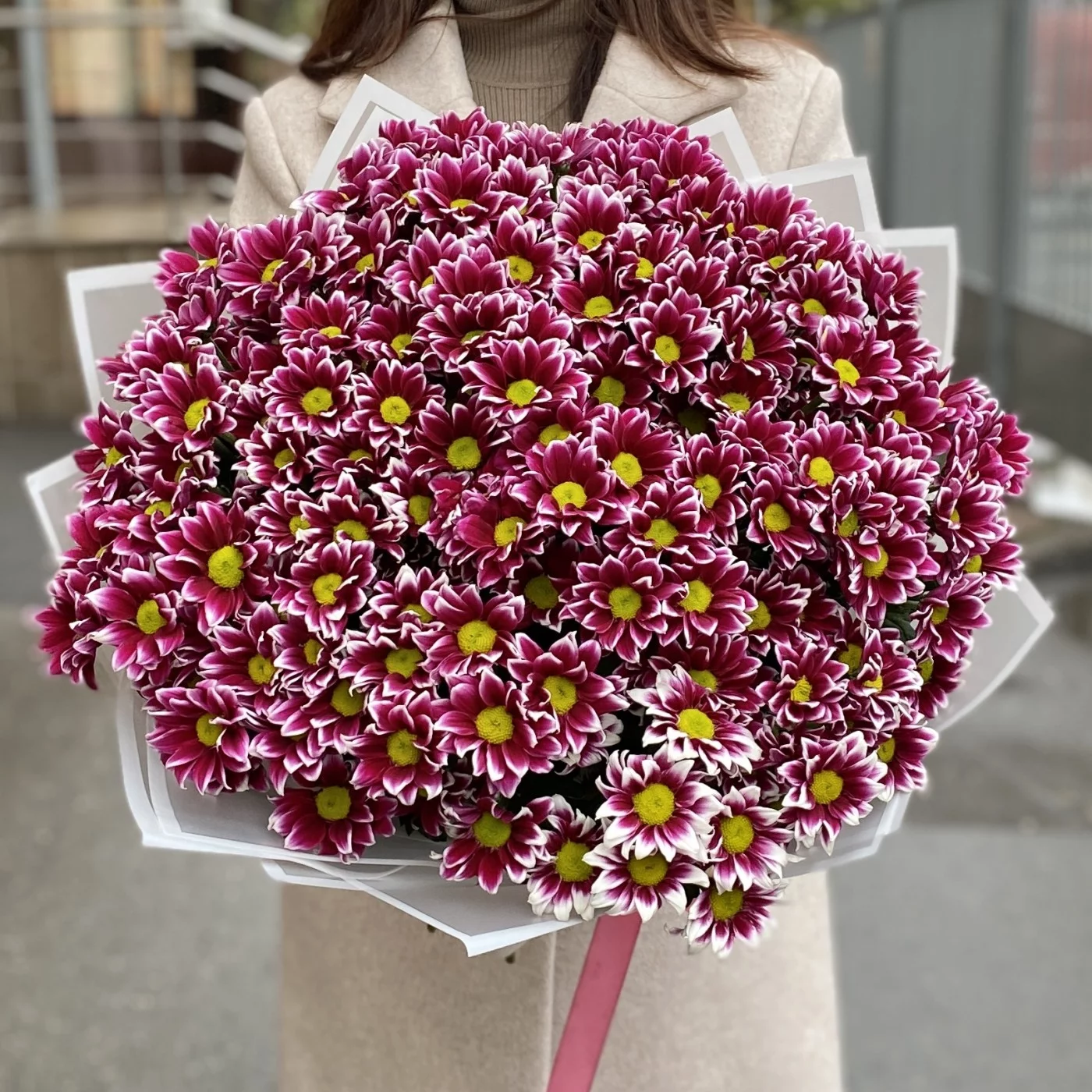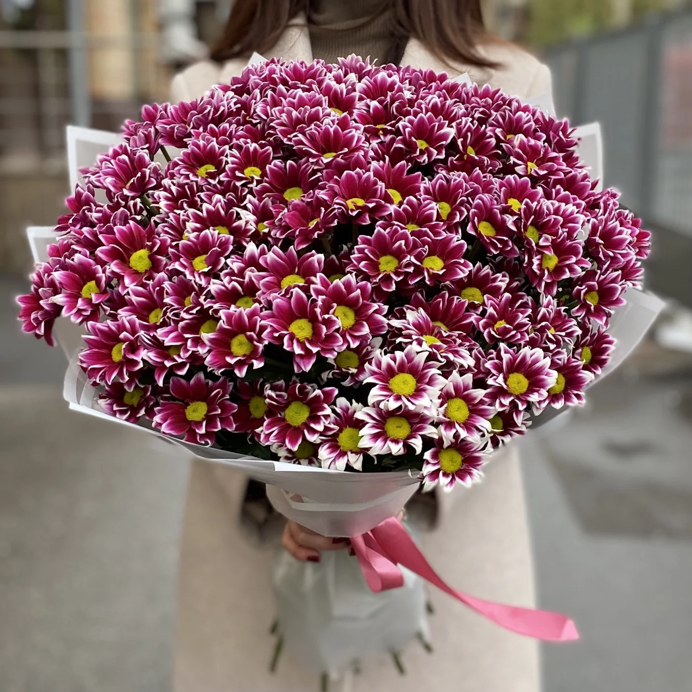 Букет из 25 кустовых хризантем сорта Хайдар Пинк — это элегантное и стильное решение для любого повода.