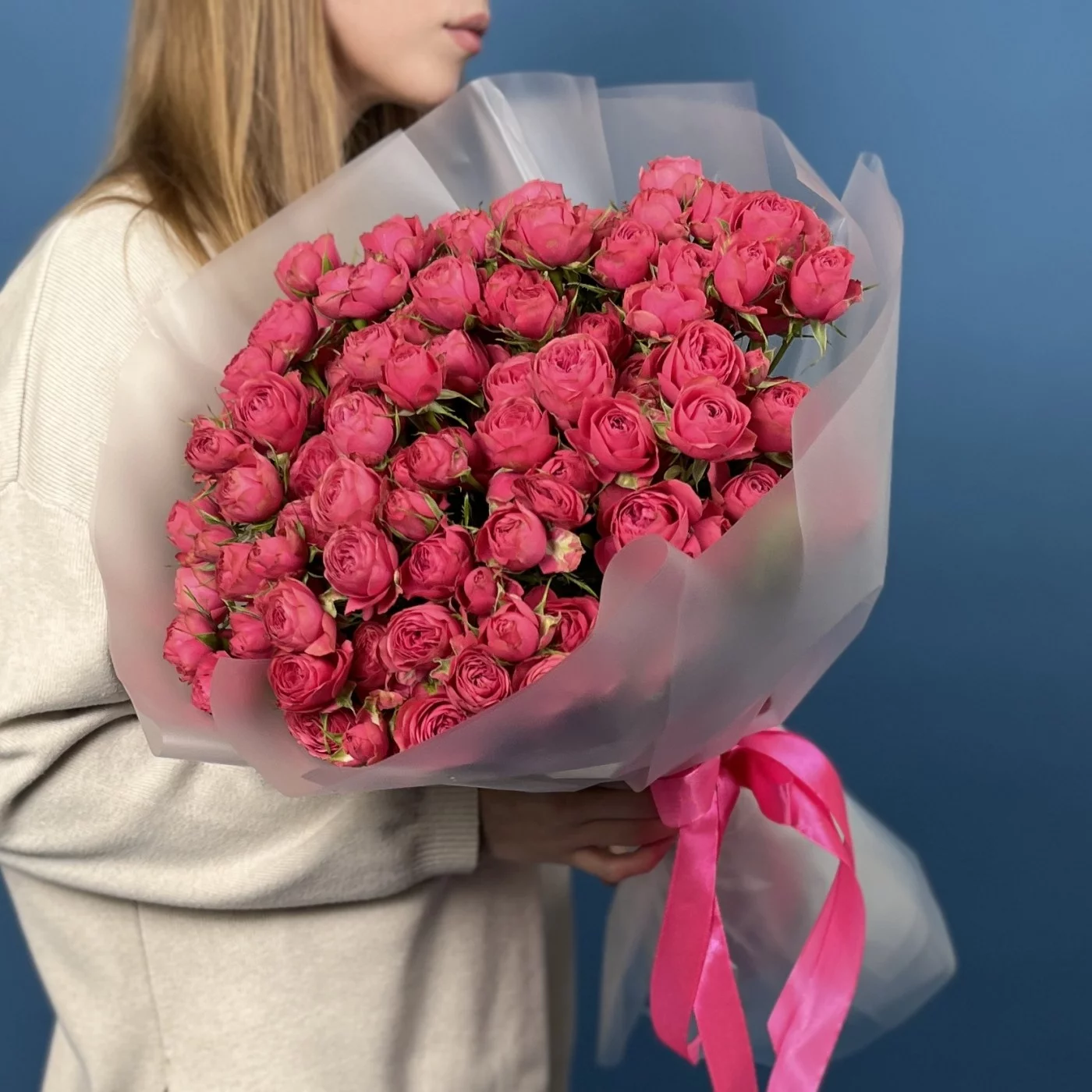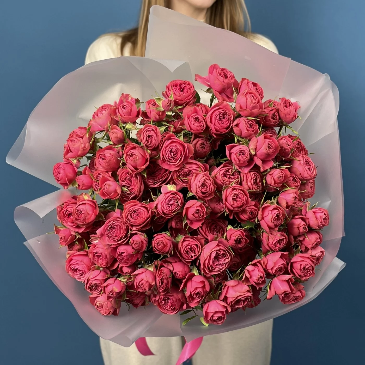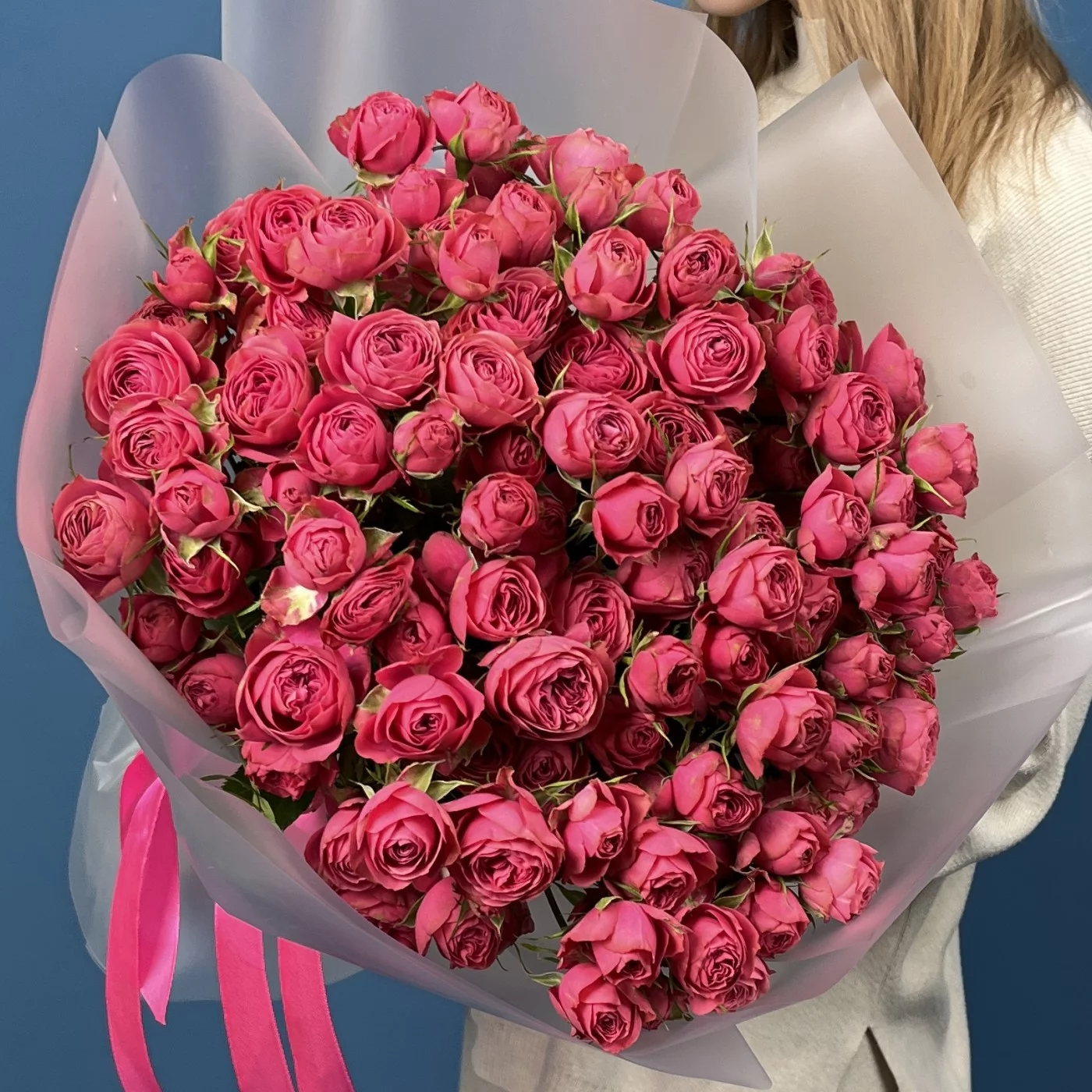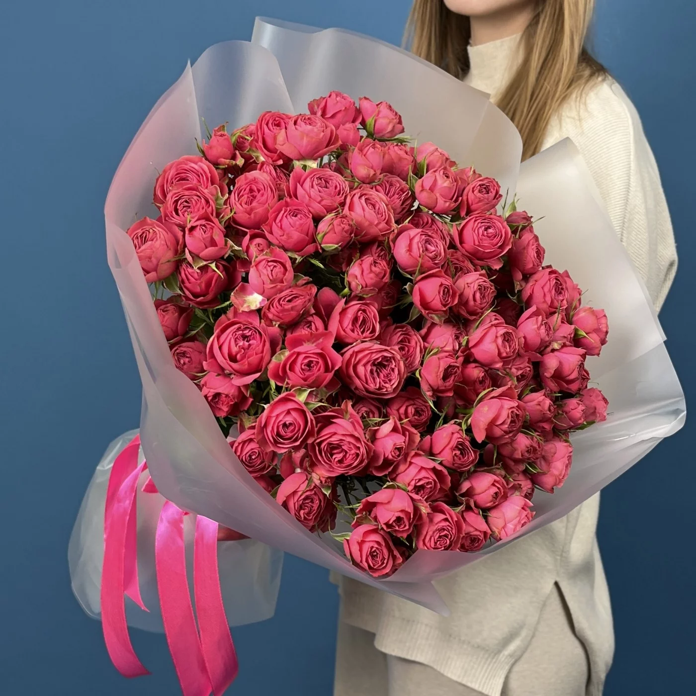 25 кустовых пионовидных малиновых роз Гранд Трендсеттер 40 см