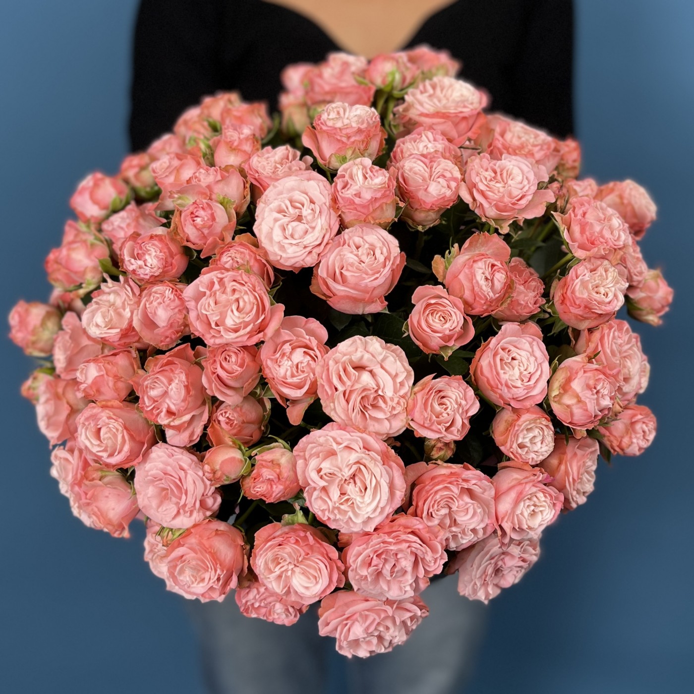 25 кустовых пионовидных роз Мадам Бомбастик в коробке