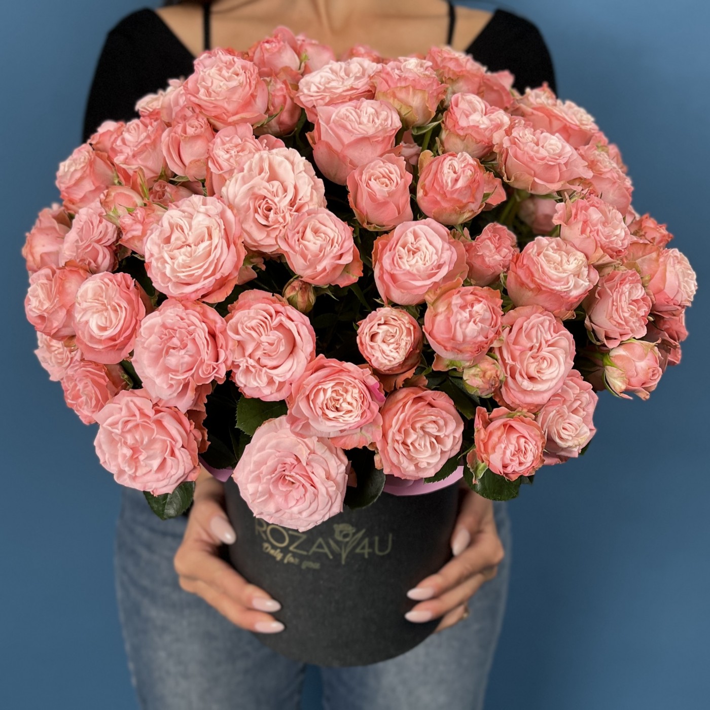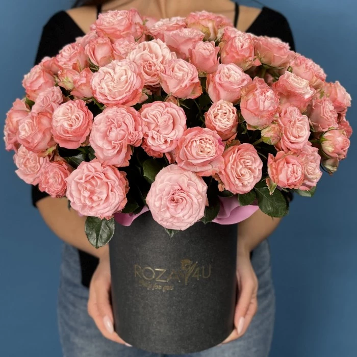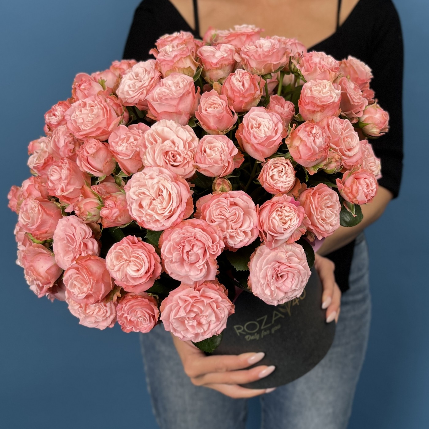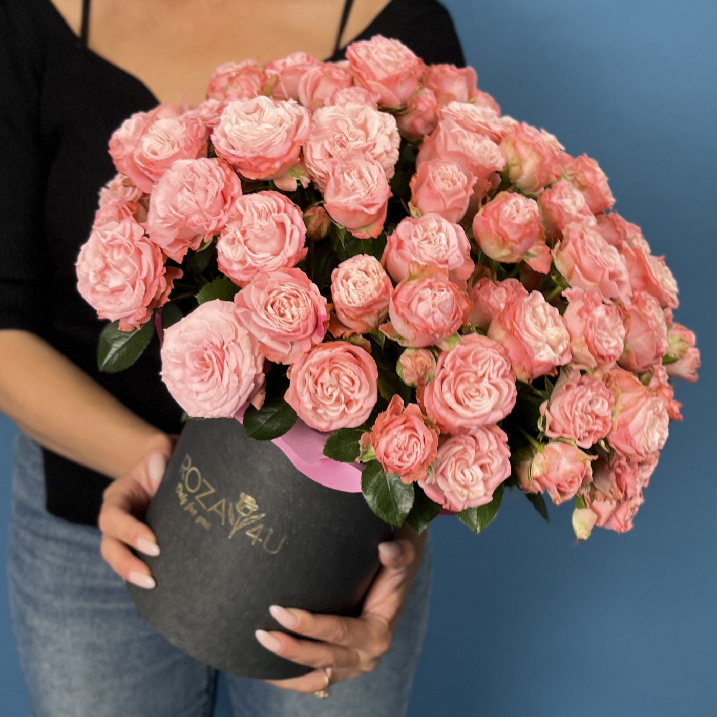 Шикарная шляпная коробка из кустовой пионовидной розы Мадам Бомбастик принесет улыбку и радостное настроение получательнице. Эти цветы станут прекрасным комплиментом женской красоте и расскажут о ваших чувствах.