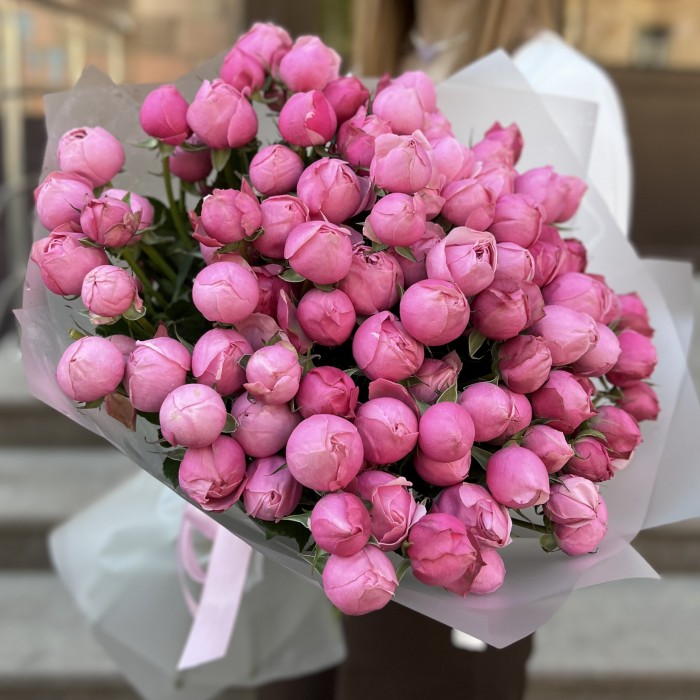 25 кустовых пионовидных роз Сильва Пинк 60 см
