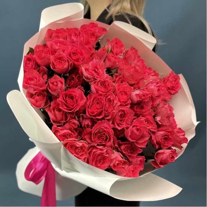 Ее насыщенный малиновый оттенок символизирует страсть, энергию и тепло, а пышная кустовая форма создает эффектный объем и выразительность.