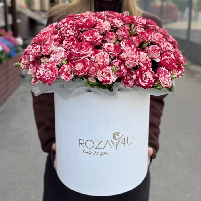 25 кустовых роз Файрворкс в коробке