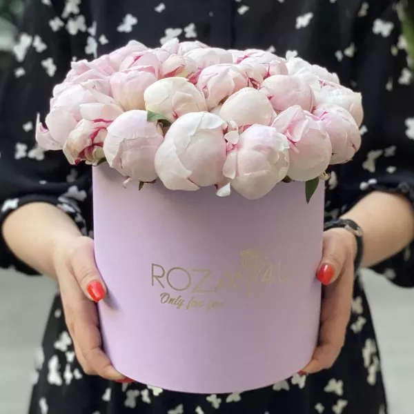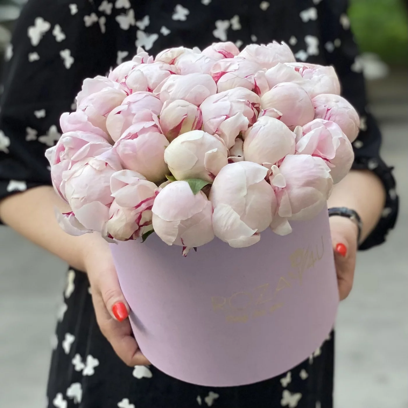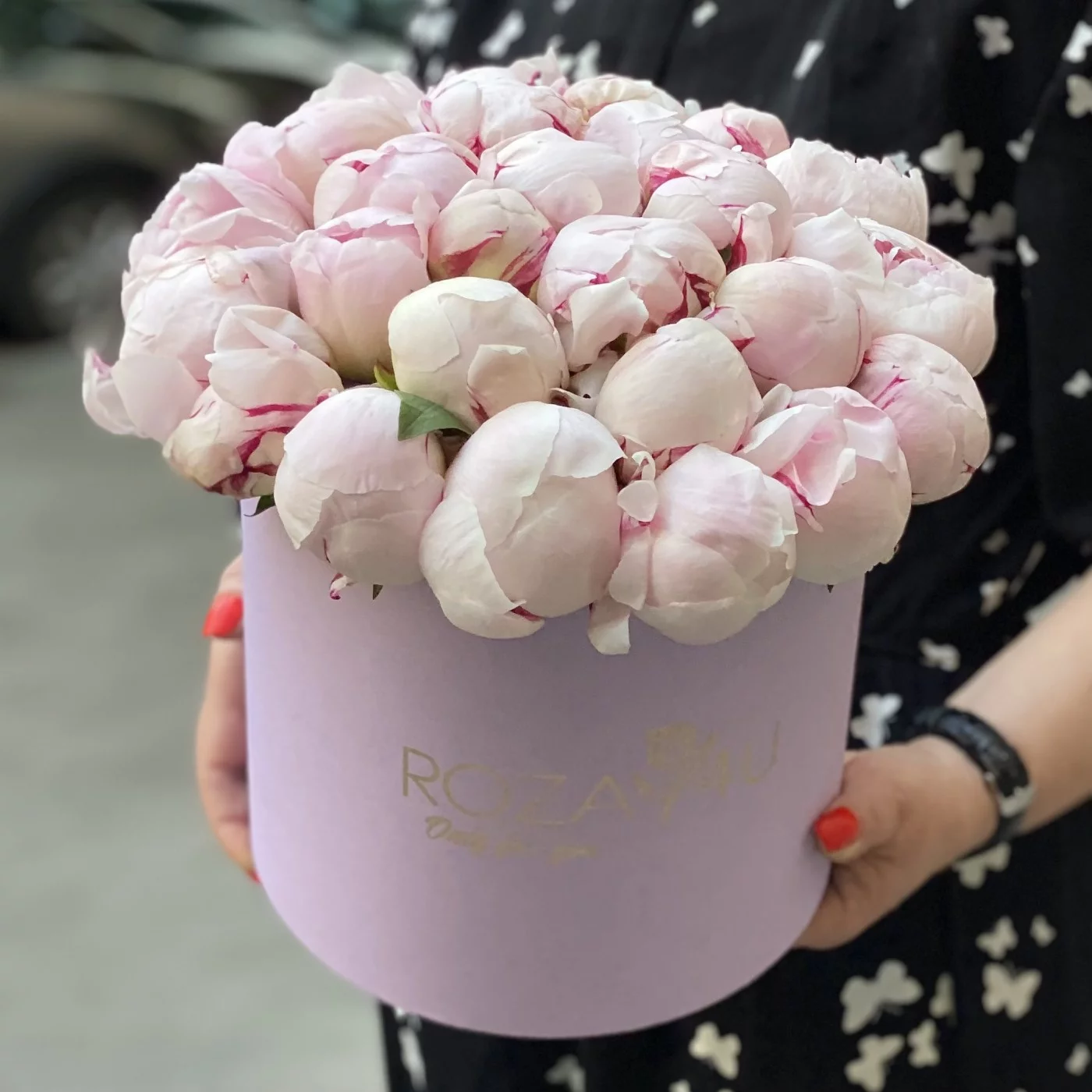 Коробка из 25 пионов Фестива — это роскошная и изысканная композиция. Пышные, крупные цветы с нежными лепестками создают атмосферу романтики и тепла, делая этот букет идеальным подарком для особых моментов.