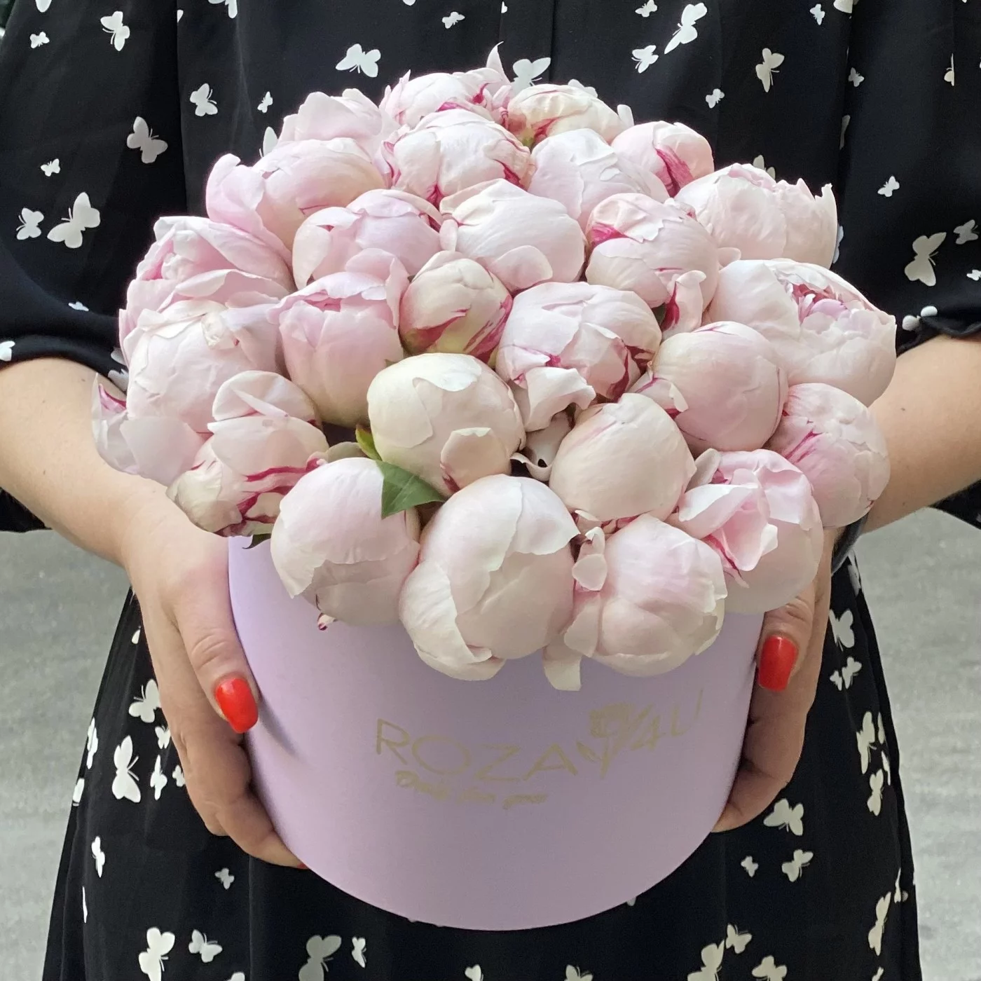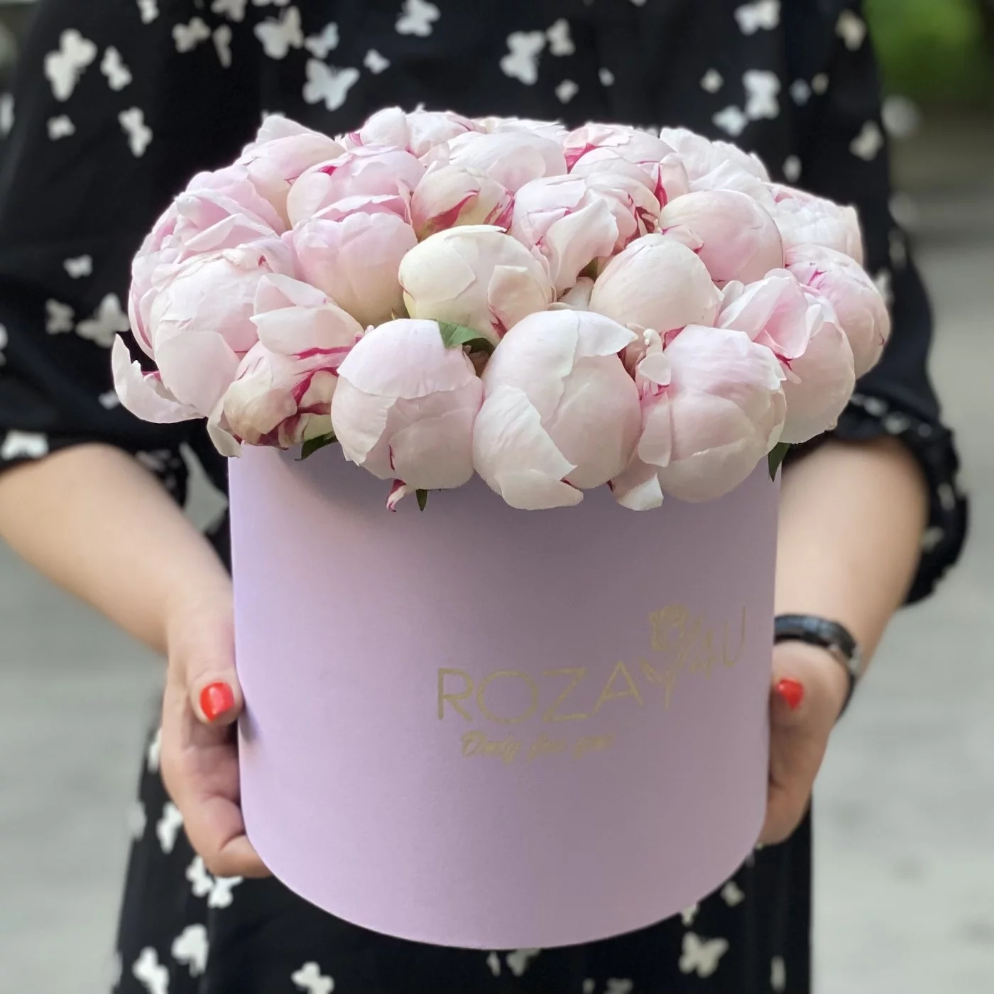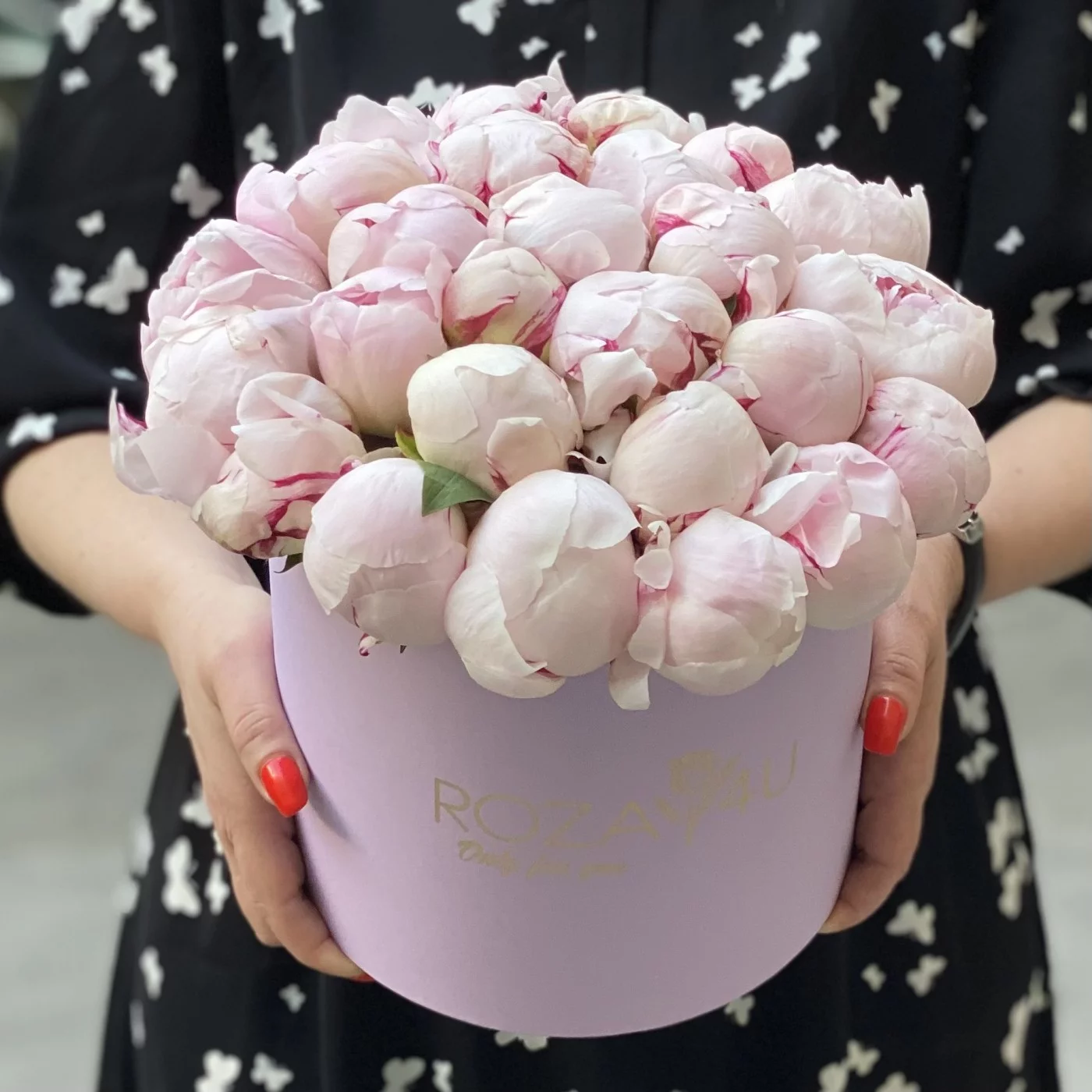 Коробка из 25 пионов Фестива — это роскошная и изысканная композиция. Пышные, крупные цветы с нежными лепестками создают атмосферу романтики и тепла, делая этот букет идеальным подарком для особых моментов.