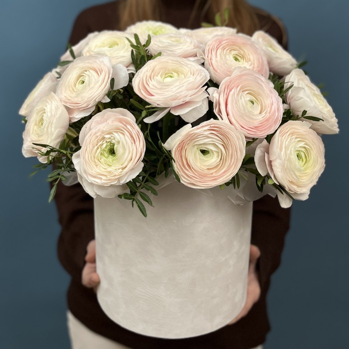 25 пышных ранункулюсов Ханой в бархатной коробке