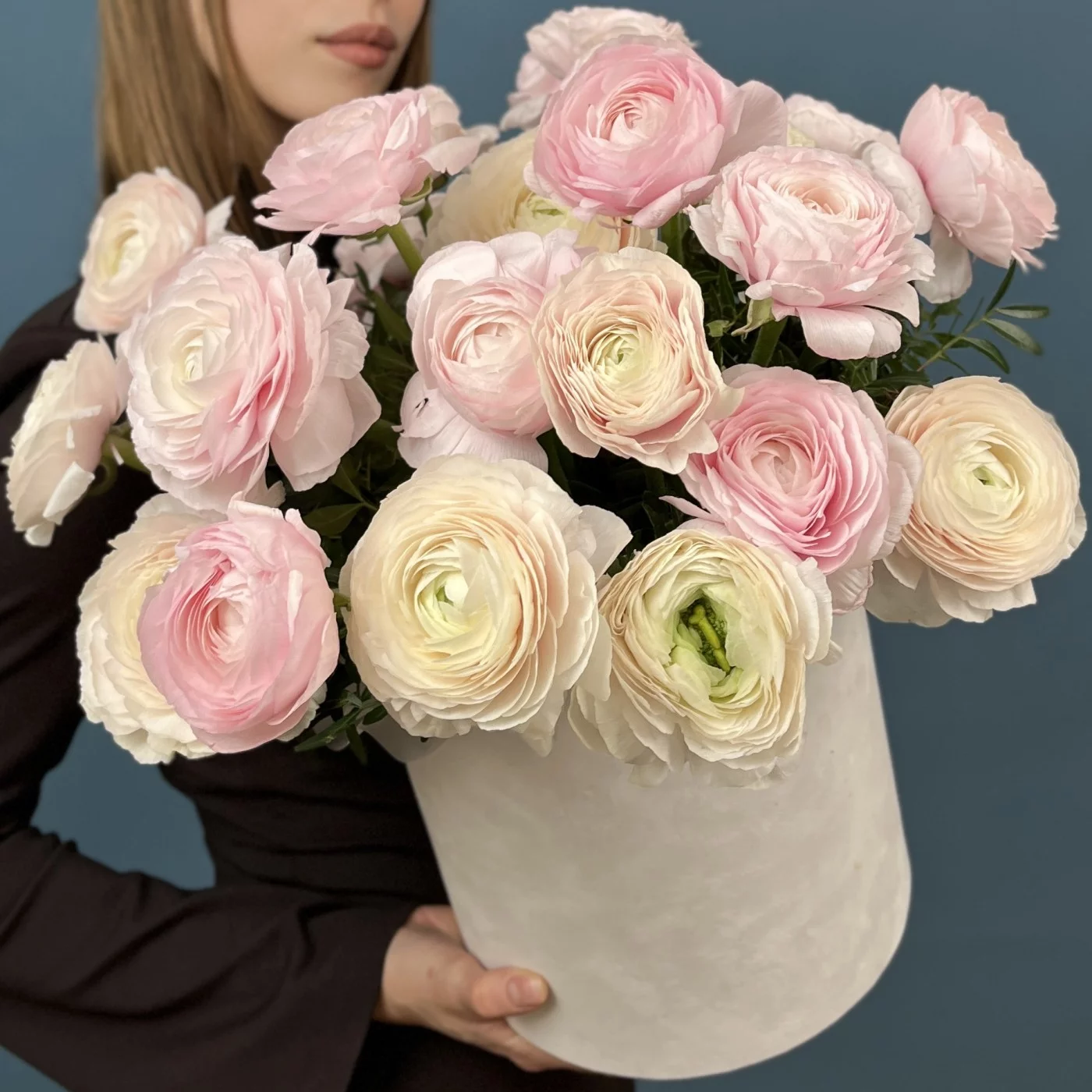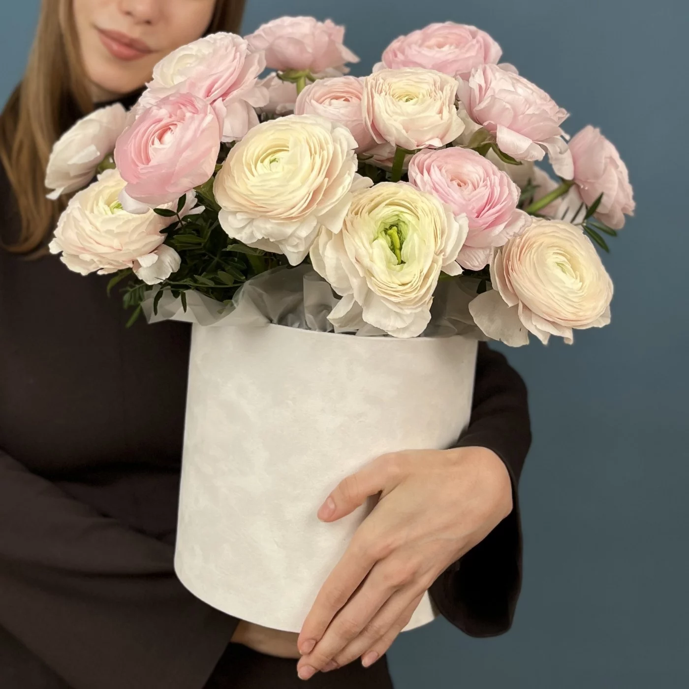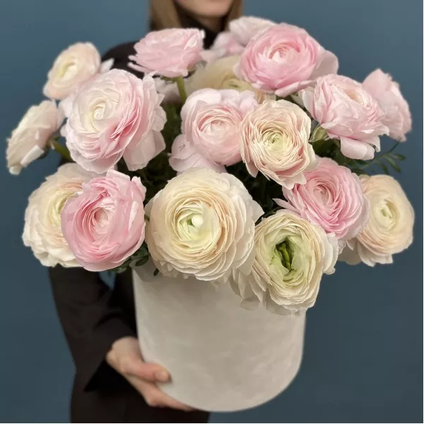 25 пышных розовых и розово-белых ранункулюсов, эффектно оформленный в стильной коробке, станет незабываемым подарком для любого случая. Нежные оттенки розового олицетворяют романтику и нежность, а сам цветок с многослойными лепестками вызывает восхищение своей красотой.