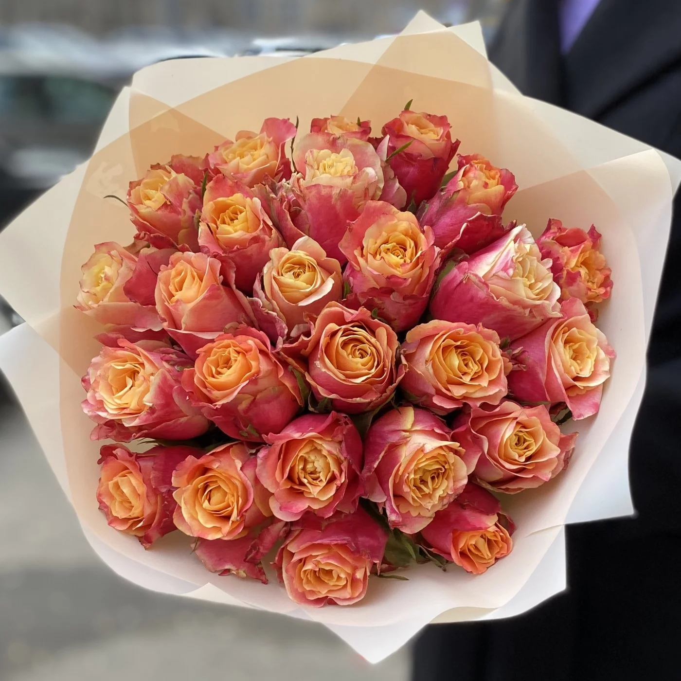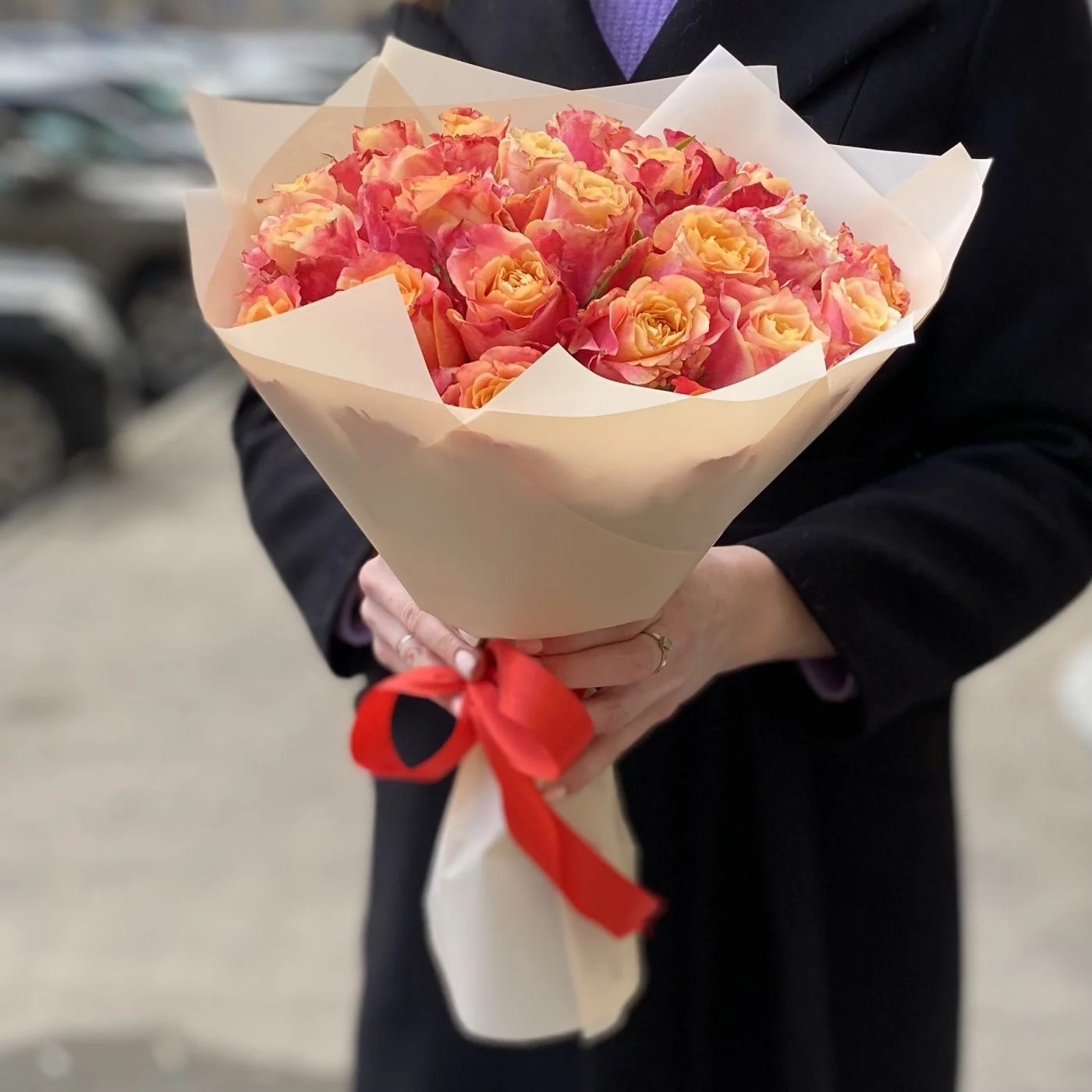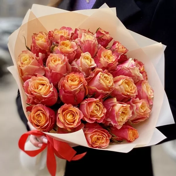 Вам нужно кого-то впечатлить или неожиданно обрадовать? Закажите этот невероятно красивый, огненный букет, который состоит из 25 роз длинной 40 см привлекательного красно-оранжевого оттенка. Такие 3D розы идеально подойдут к случаю, когда хочется чего-то необычного, нестандартного.