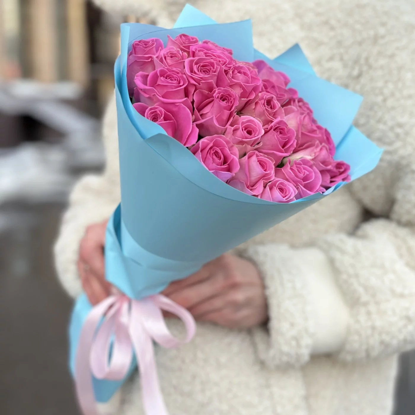 Нежный букет розовых роз. Сочные и нежные розы создают настроение праздника! Они будут отличным комплиментом женской красоте.