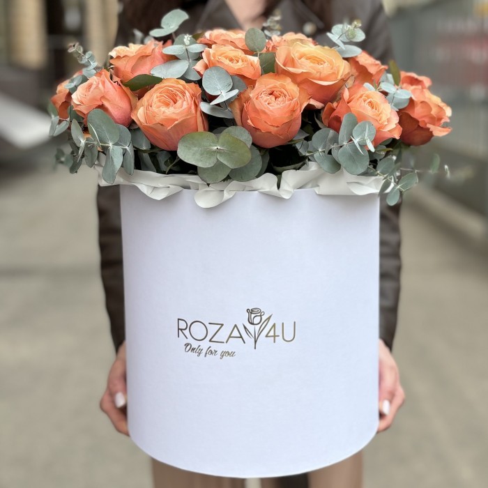 Красивая композиция из 25 роз сорта Кахала собранный в шляпной коробке для цветов - сможет удивить самую капризную девушку! Эксклюзивная композиция от наших профессиональных флористов специально для Вашего получателя. Доставка букета осуществляется по Москве и всей Московской области.