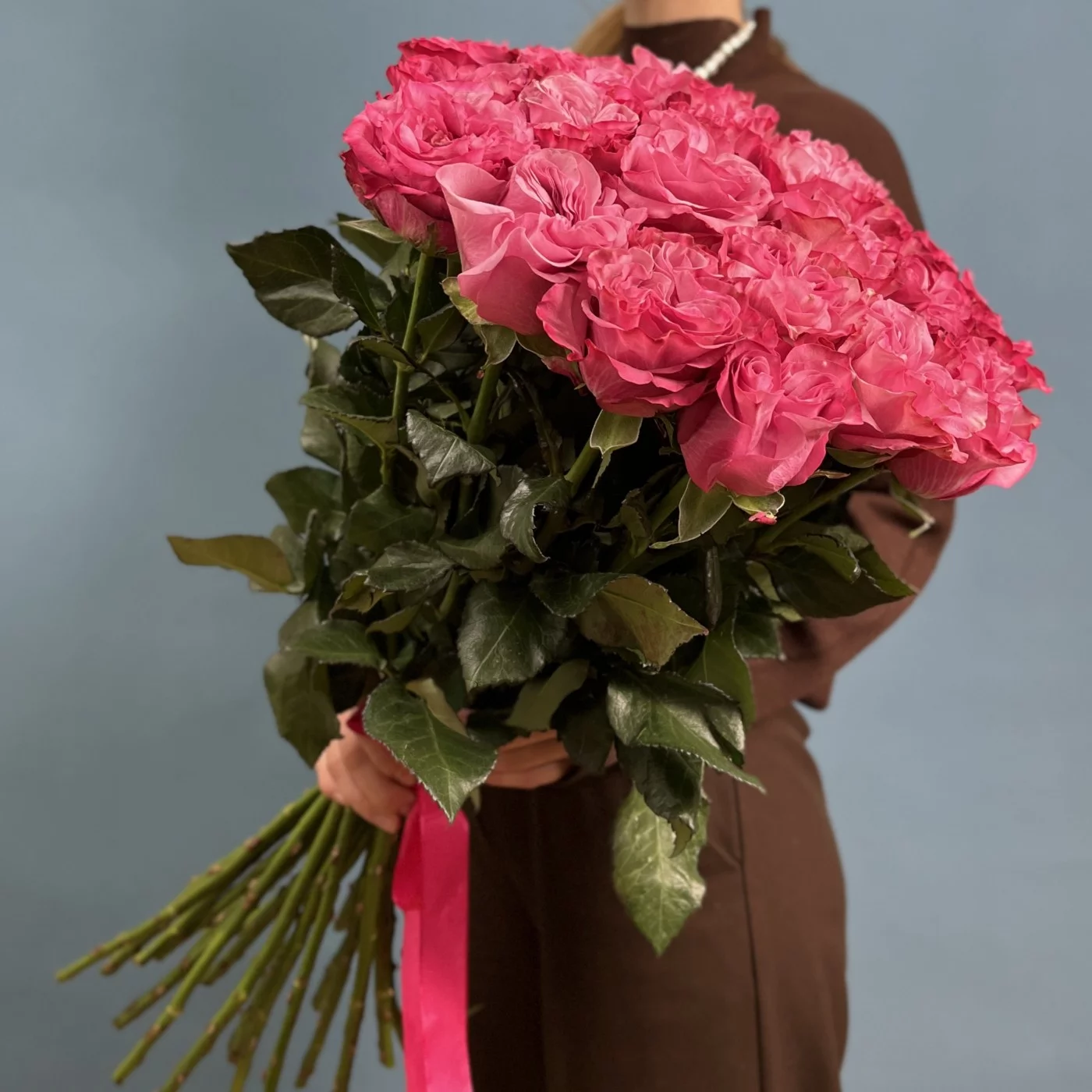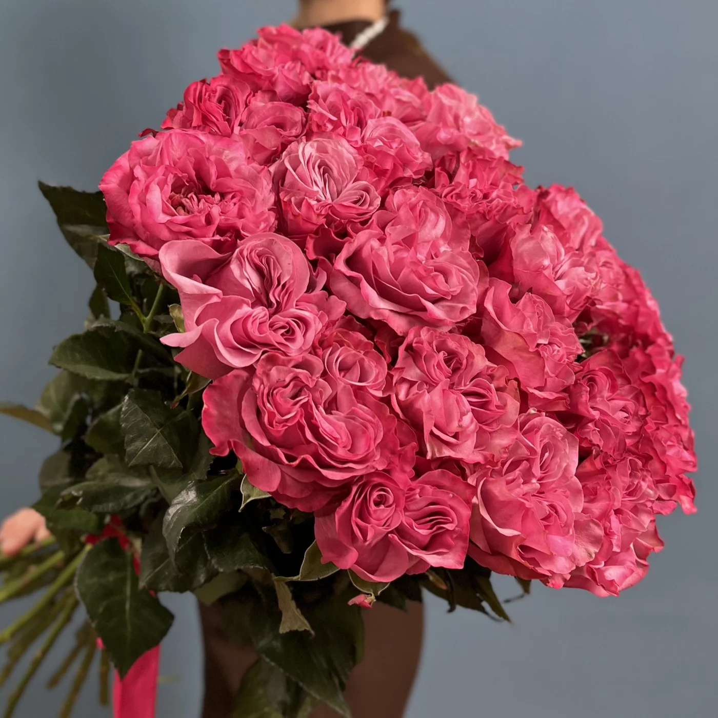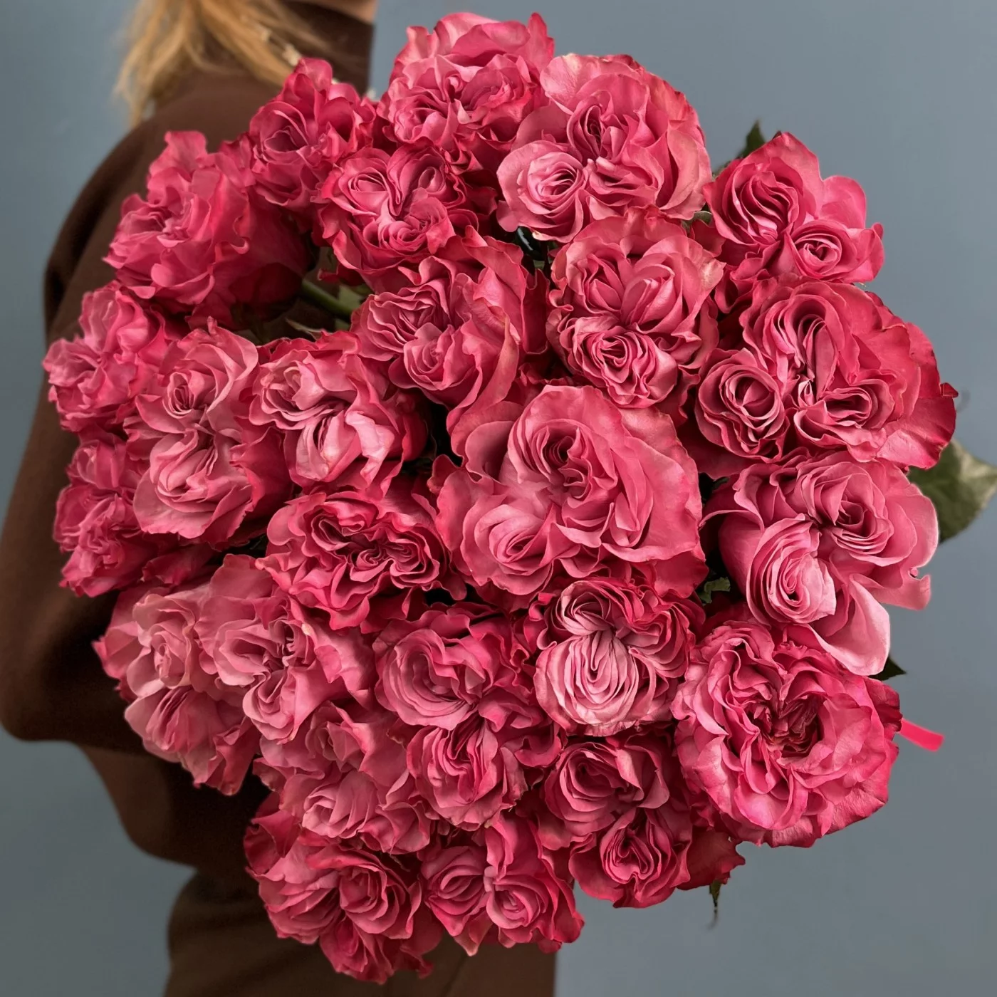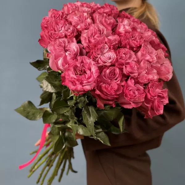 Изысканная пионовидная роза Кантри Блюз радует взор насыщенным розовым цветом и идеальной формой круглого бутона.Такой букет никак нельзя назвать банальным, настолько живописно и эффектно смотрятся эти сочные тяжелые бутоны даже без каких-либо дополнений и украшений.Невероятно женственные пионовидные розы станут прекрасным посланием для девушки любого возраста, будь то личный подарок или деловое поздравление.Букет из 25 пионовидных роз Кантри блюз можно дополнить стильной корейской цветной пленкой или крафтовой бумагой.