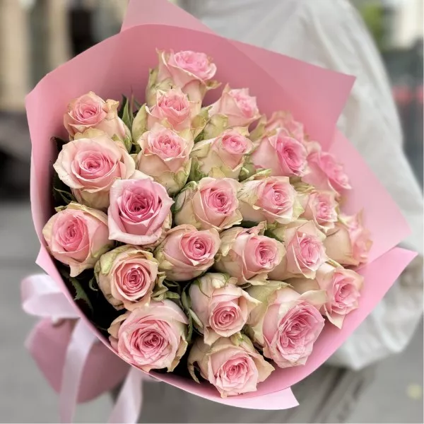 Букет из 25 нежно-розовых роз сорта Судоку – это воплощение нежности и элегантности, который станет идеальным подарком для любого торжества или просто без повода. Эти розы поражают своим утонченным и изысканным видом, создавая атмосферу романтики и тепла.