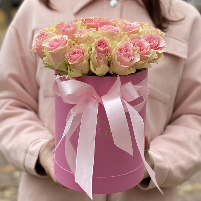 Роскошная цветочная композиция из нежных розовых роз, собранная в шляпной коробке удивит самую капризную девушку! Это символ глубоких чувств и уважения. Эксклюзивная композиция от наших профессиональных флористов специально для Вашего получателя.