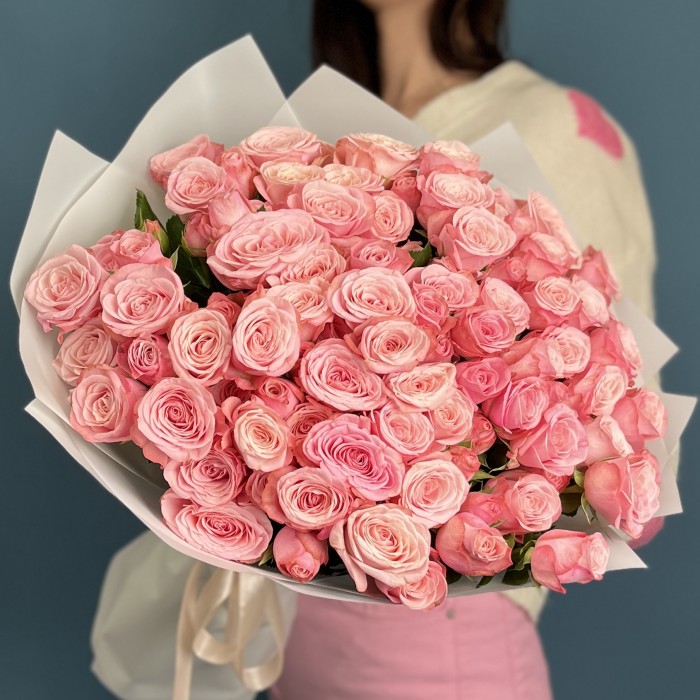 25 розовых кустовых роз Бердс Нест 50 см