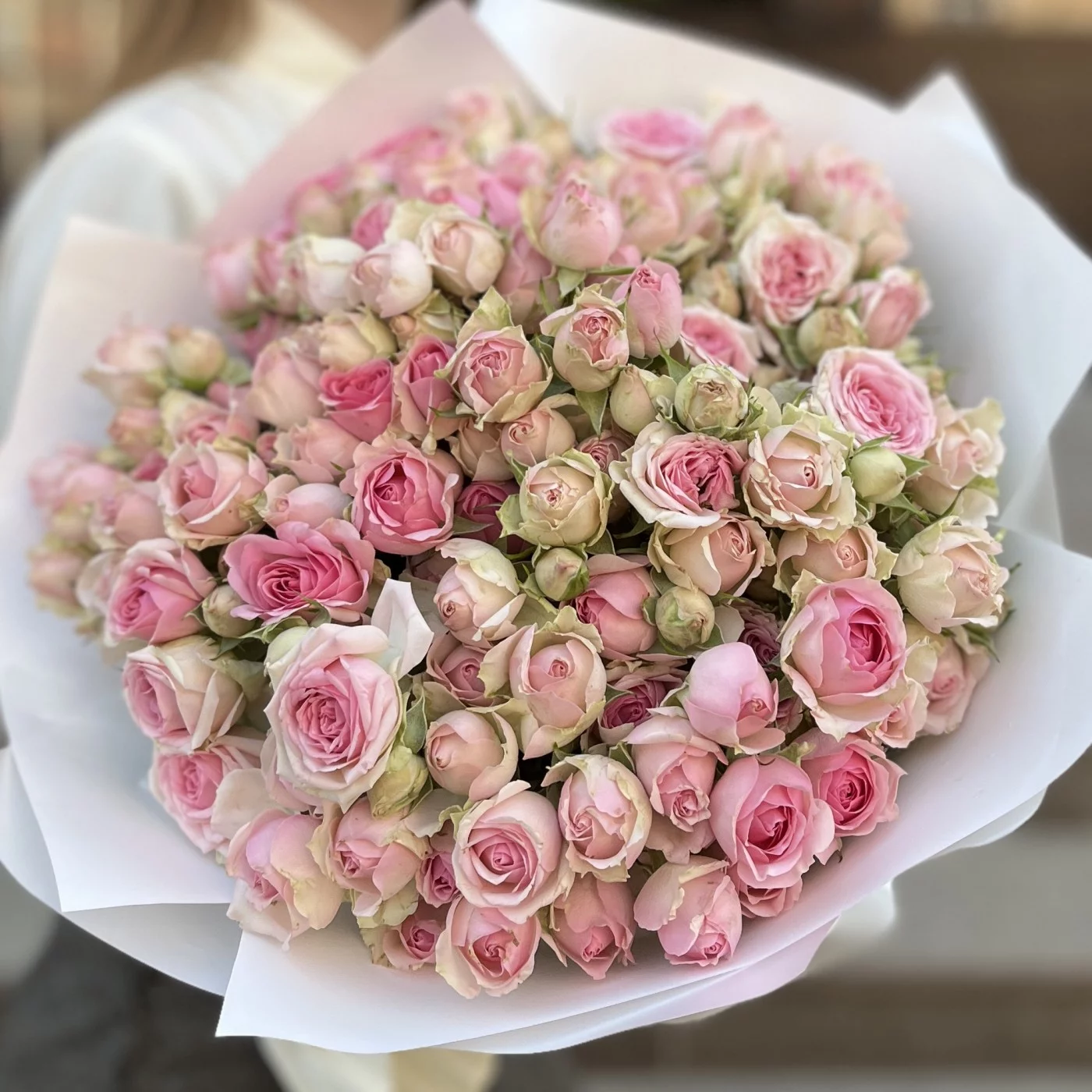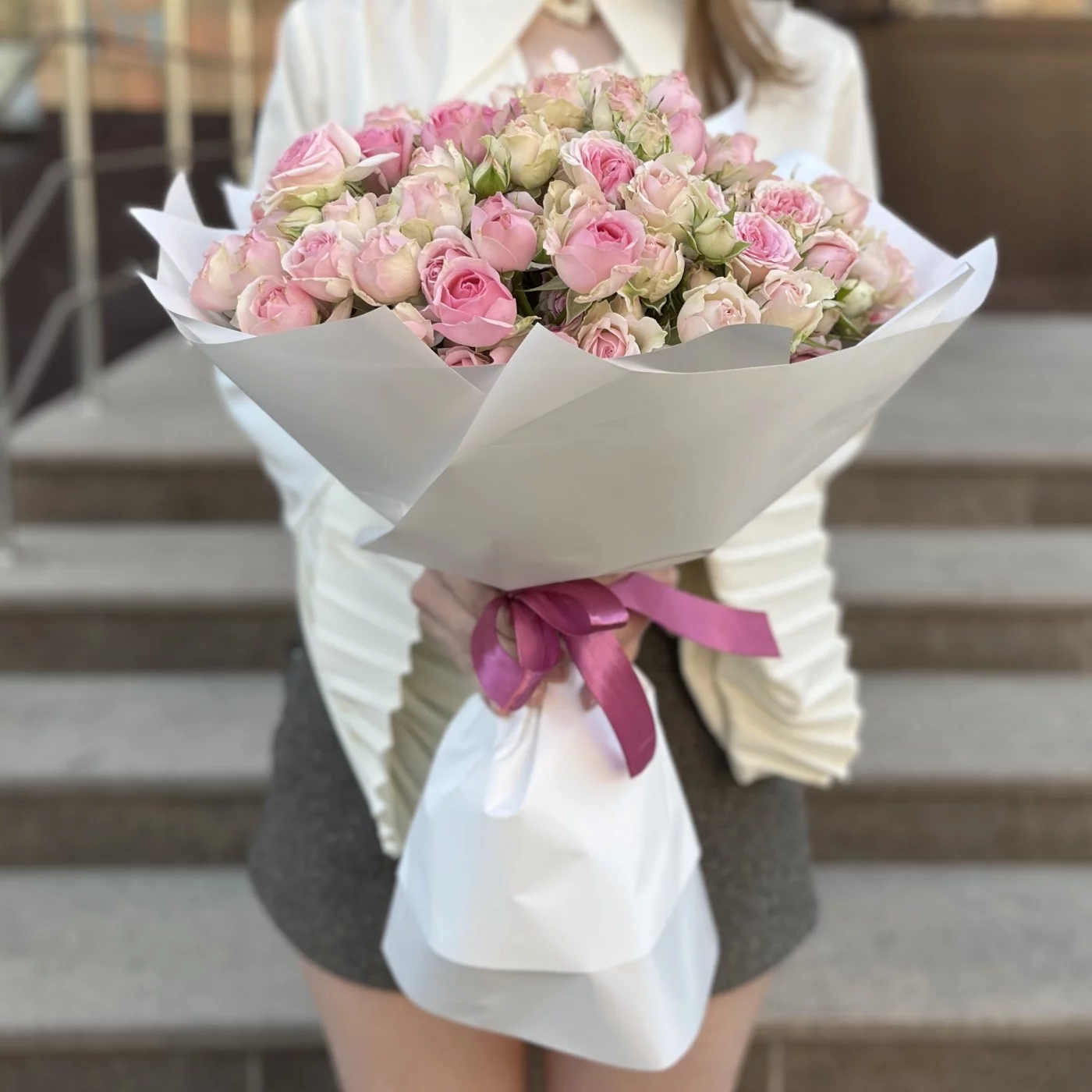 Букет из 25 розовых кустовых роз Динара длиной 40 см — это великолепное и элегантное решение для любого торжества или особого случая. Розы этого сорта известны своей красотой, насыщенным цветом и стойкостью.
