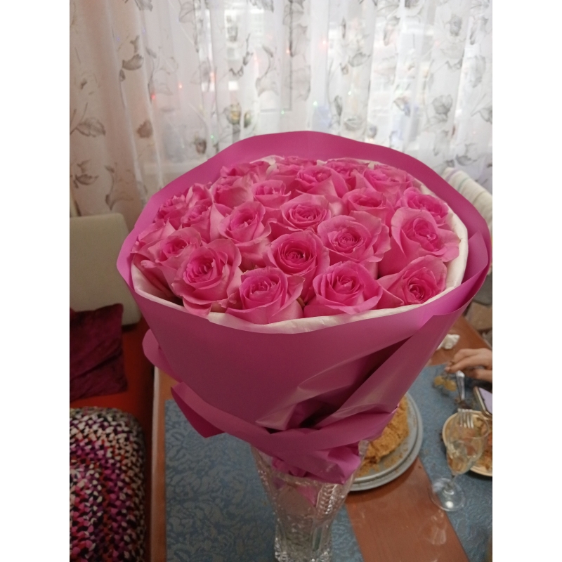 Cостав: 25 шт розовых роз длиной 60 см.