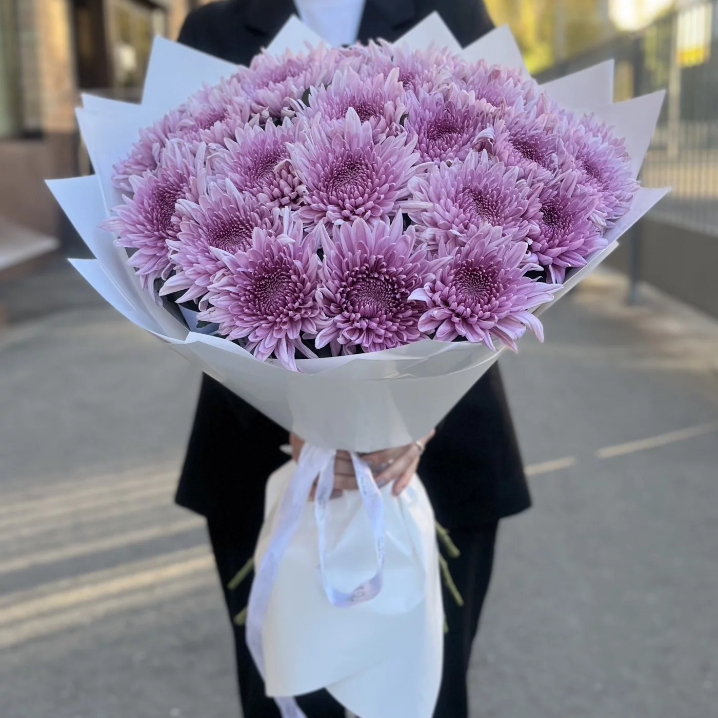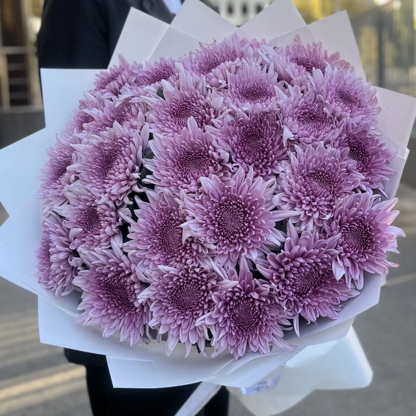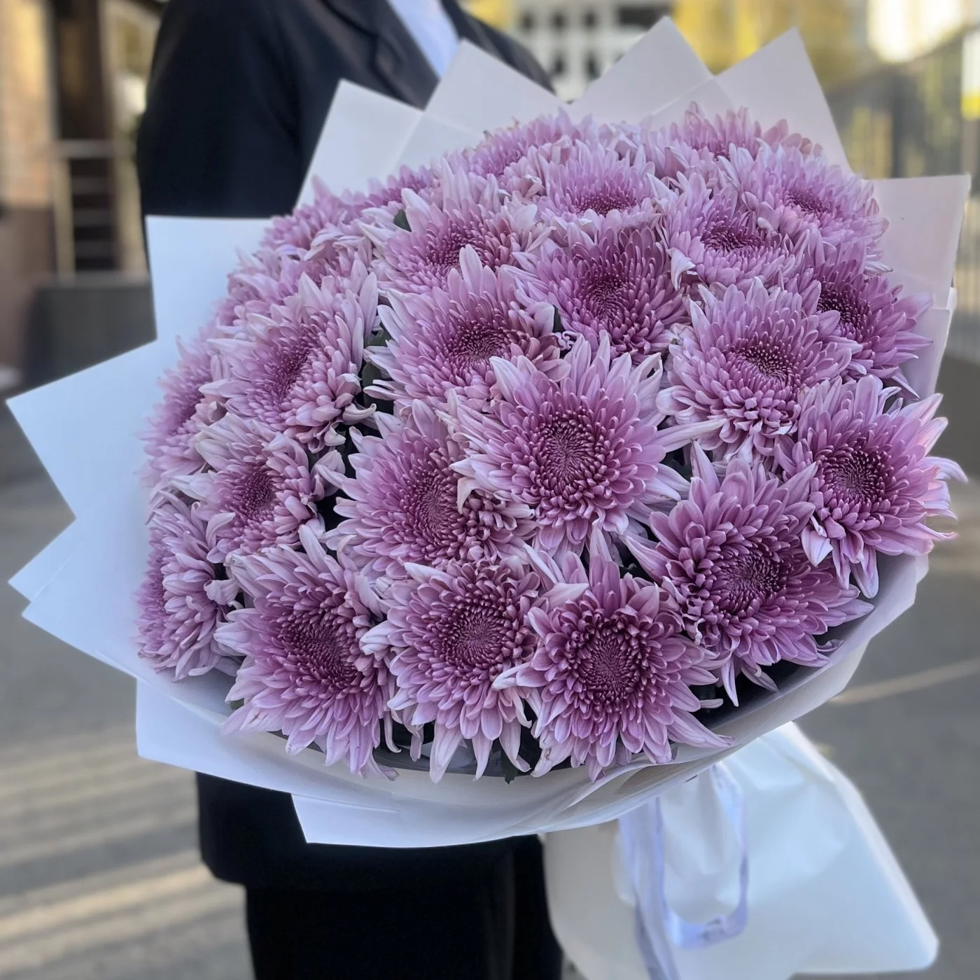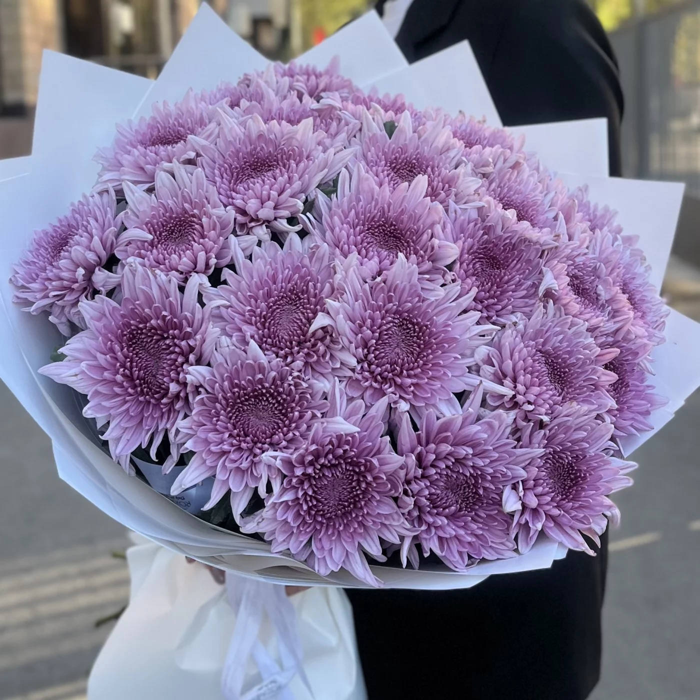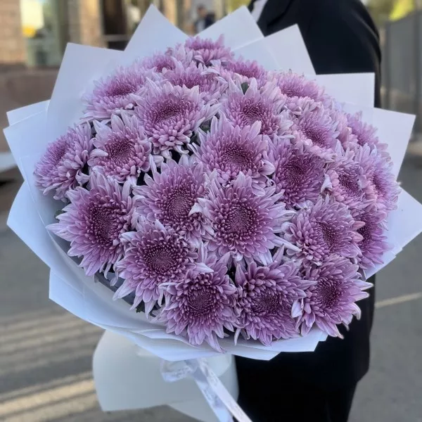 25 сиреневых хризантем — это красивый и стильный выбор для букета!