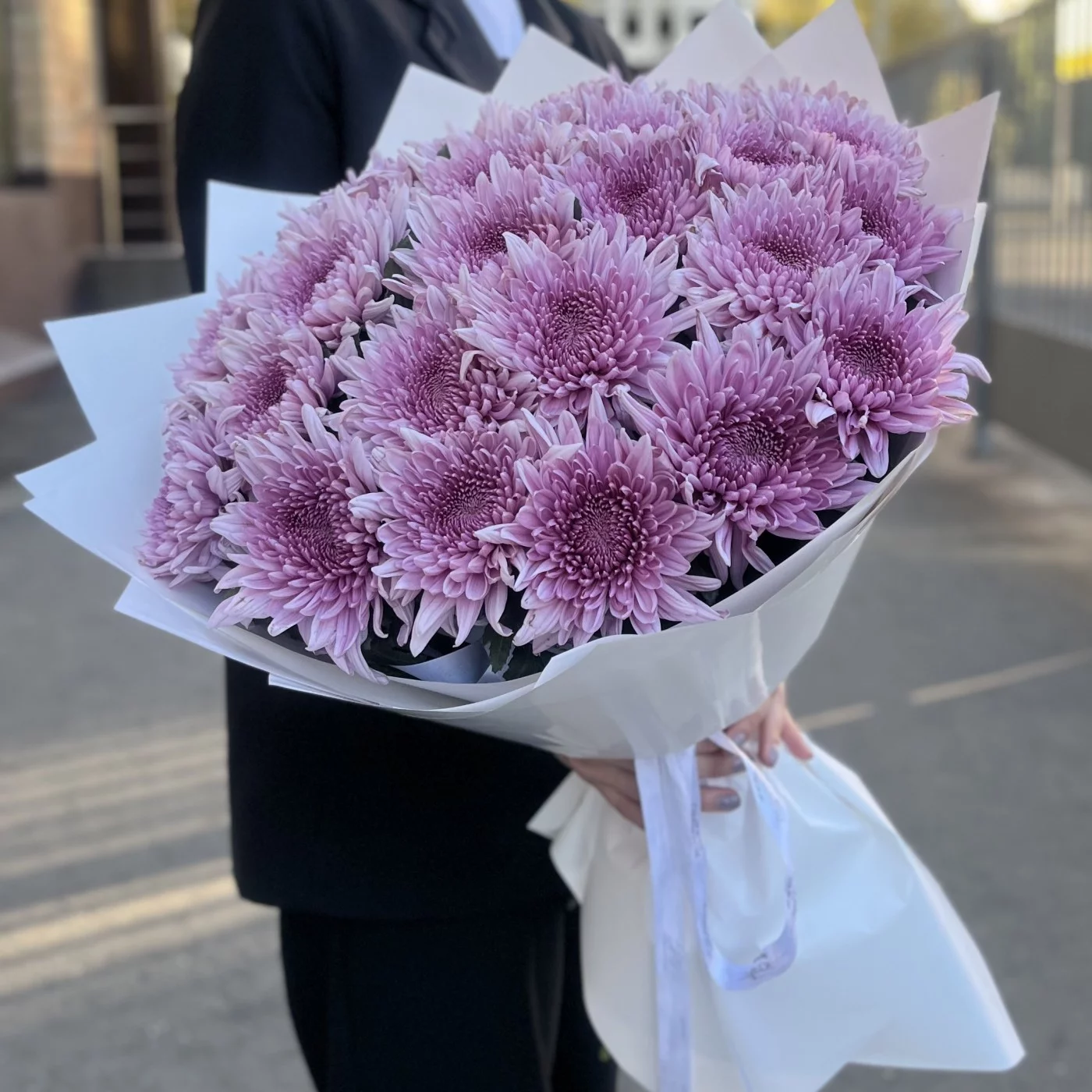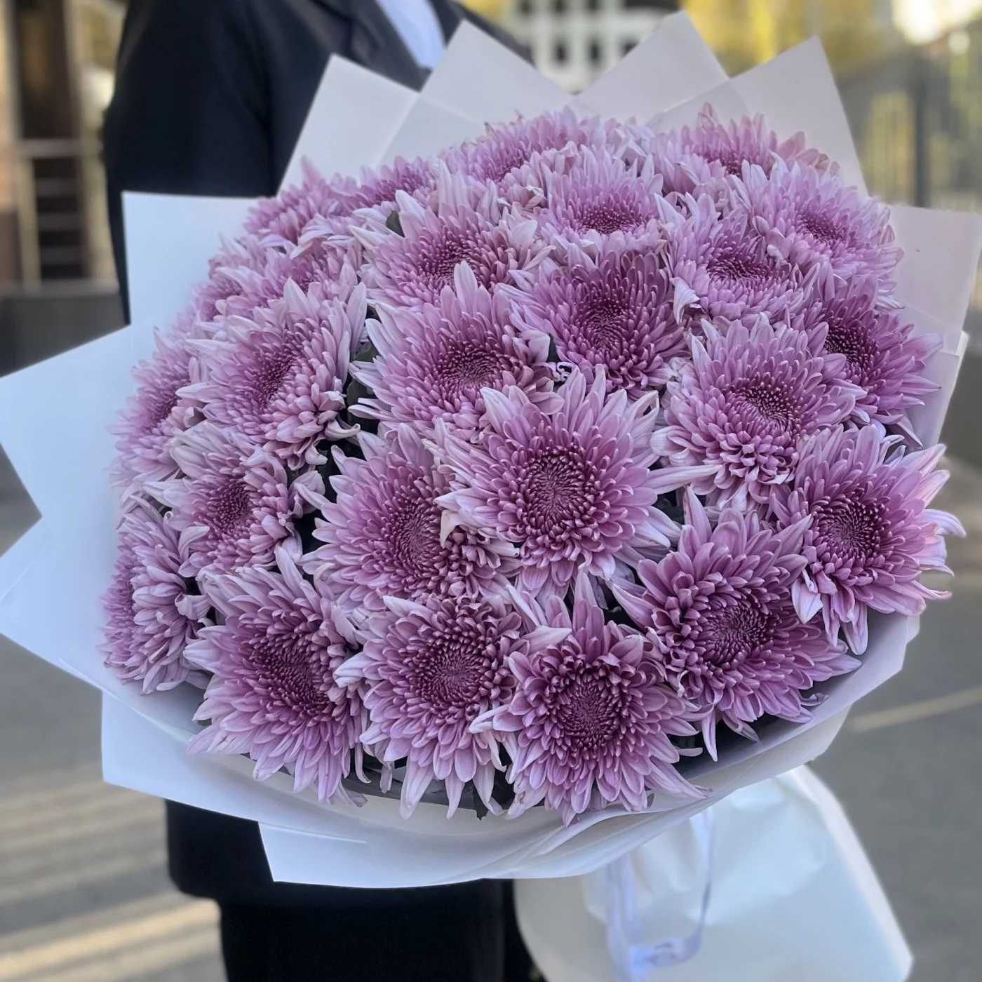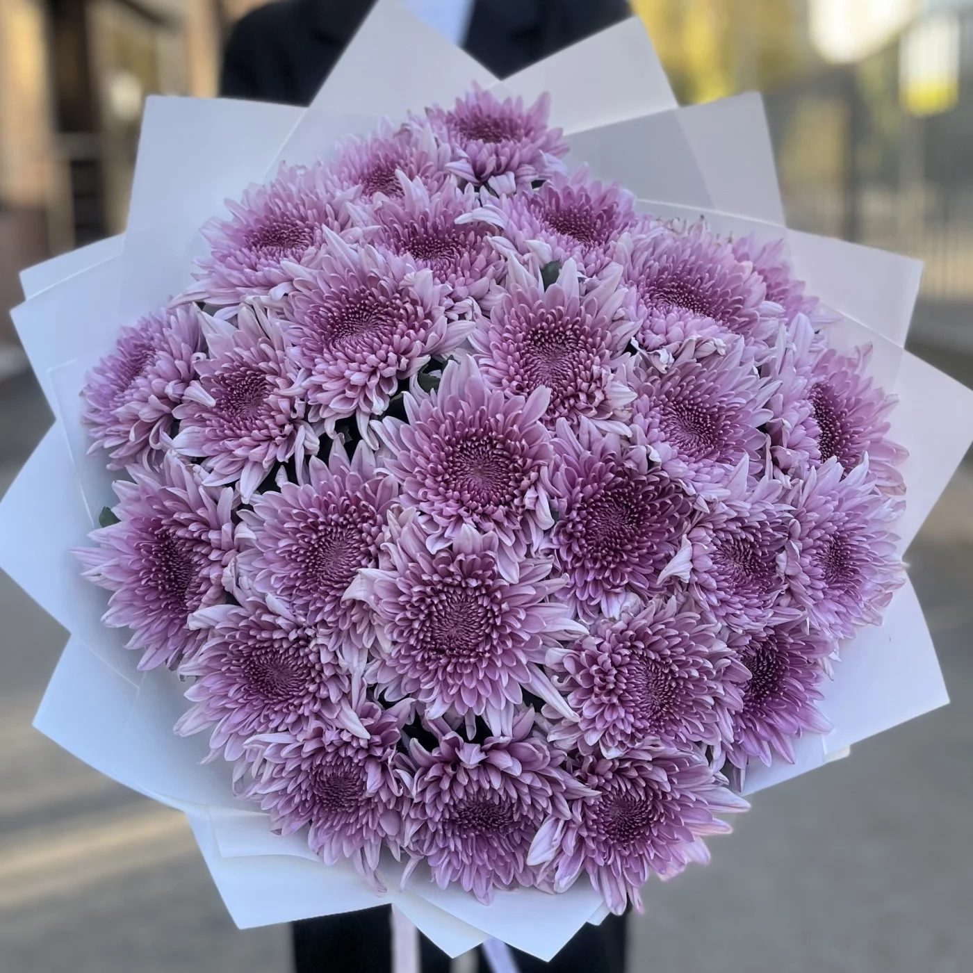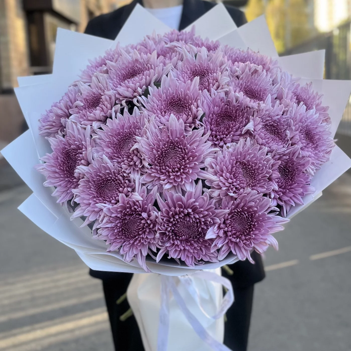25 сиреневых хризантем — это красивый и стильный выбор для букета!